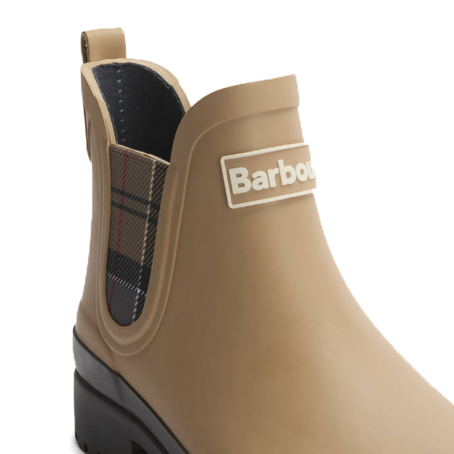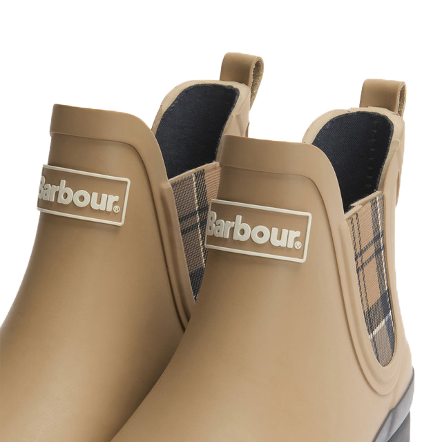 Realizzati in gomma resistente, questi stivali di gomma corti alla caviglia sono progettati per affrontare acquazzoni improvvisi e sentieri fangosi senza perdere un colpo. I pannelli laterali elastici in tartan richiamano la tradizione Barbour, rendendoli facili da indossare e togliere, senza sforzo. Una suola spessa e un tacco di 3 cm offrono aderenza e supporto sotto il piede, senza appesantire.