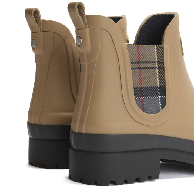 Non lasciare che la pioggia rovini il tuo stile, gli stivali di gomma corti alla caviglia Barbour Mallow da donna in beige/tartan sono un capo essenziale ed elegante per tutti i giorni. Progettati con l'aspetto di uno stivaletto Chelsea ma la funzionalità di uno stivale di gomma, sono la scelta perfetta per passeggiate con il cane sotto la pioggia, lavori in giardino o corse al supermercato in tutta comodità.