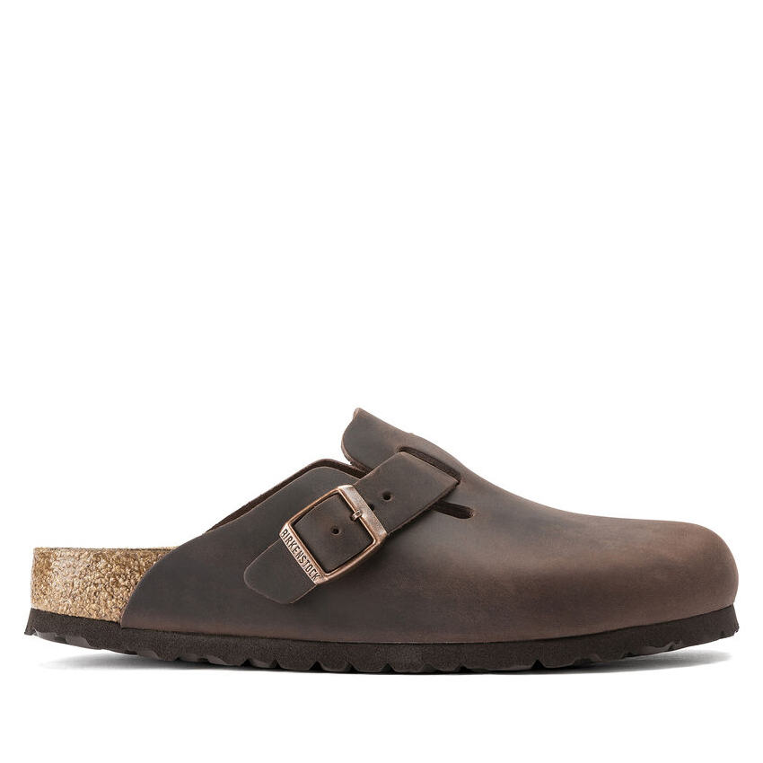 Boston, il sabot ideale per casa, lavoro e tempo libero. La combinazione tra plantare di sughero e fondo in microporosa garantiscono un ottimo isolamento. La pelle impiegata da Birkenstock è pelle di prima scelta e, al contrario di quanto avviene solitamente, è caratterizzata da una resistenza fuori del comune. Il controllo al termine della lavorazione garantisce la qualità del prodotto. Questa è la versione con pianta regolare ma nel nostro catalogo è disponibile anche la versione con pianta stretta.