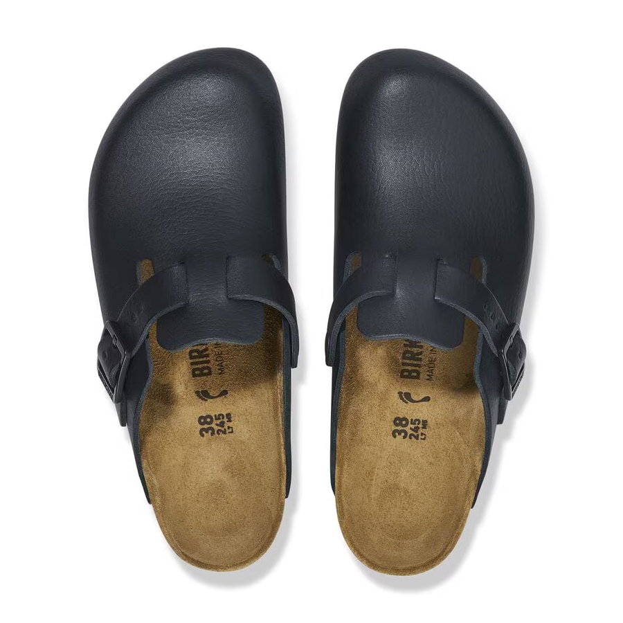 BIRKENSTOCK Boston Pro sono un vero classico da indossare facilmente durante tutto l’anno. La suola garantisce un appoggio comodo e sicuro grazie alle sue due componenti, una suola intermedia in poliuretano (PU) e una suola esterna antiscivolo, dinamica e leggera, anch'essa in poliuretano (TPU). Inoltre, la suola esterna si può anche riparare. Questo sabot quindi è perfetto per essere indossato tutti i giorni nel settore gastronomico. La tomaia è in pelle naturale pregiata e particolarmente morbida, rivestita in poliuretano (PU). Il rivestimento in PU rende il materiale permeabile al vapore e regola la temperatura nel sabot.