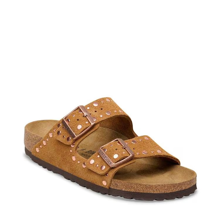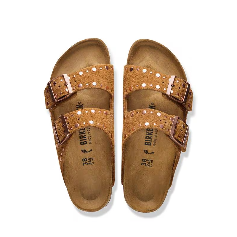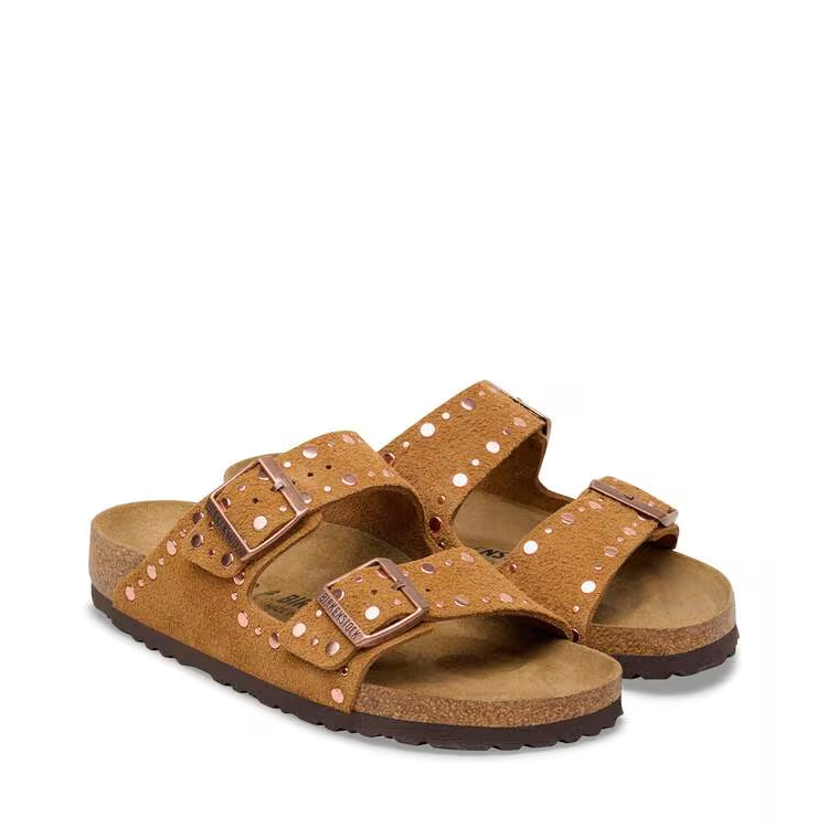 BIRKENSTOCK Arizona è un vero classico che entusiasma da decenni uomini e donne con il suo design senza tempo. Questo delicato classico con due cinturini è sinonimo di design intramontabile ed è divenuto già da tempo una comodissima scarpa di culto. Questa variante è caratterizzata da rivetti applicati con precisione, inseriti saldamente nella pelle senza controparte e non troppo in profondità. Grazie al complesso processo di lavorazione, non daranno alcun fastidio mentre indossi i sandali. Un assoluto protagonista! La tomaia è in pelle scamosciata particolarmente morbida che aderisce al piede come una seconda pelle.