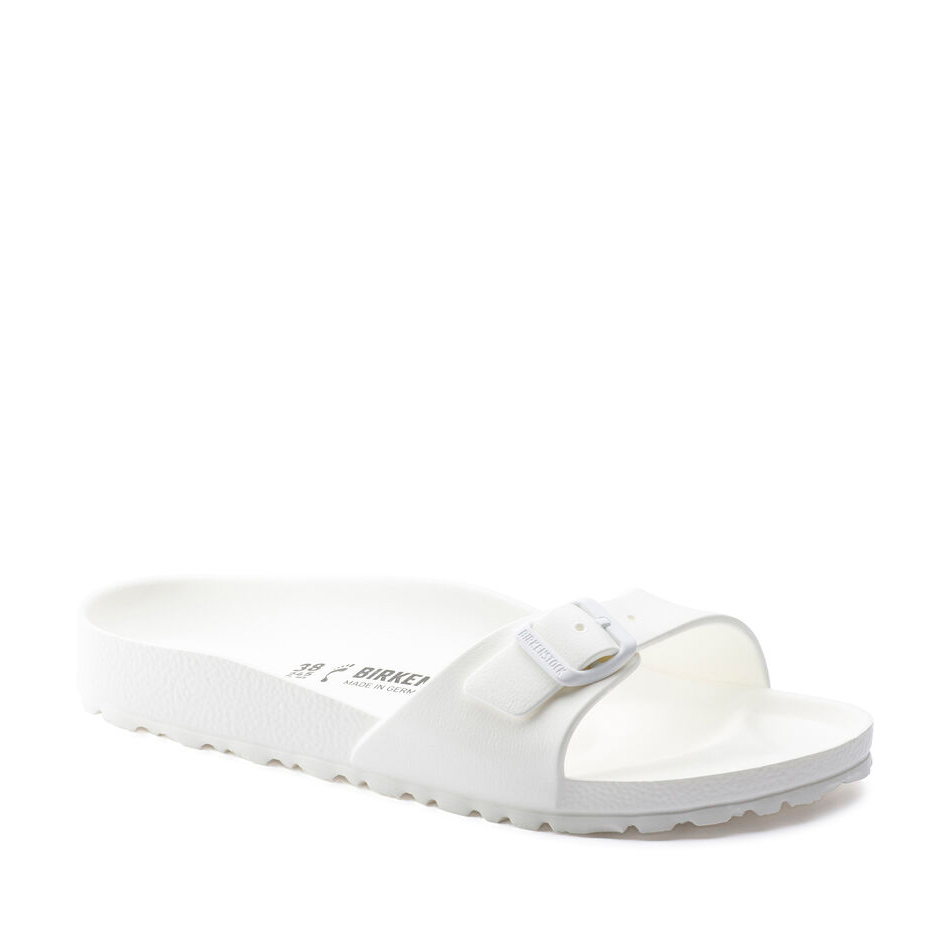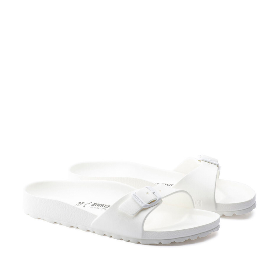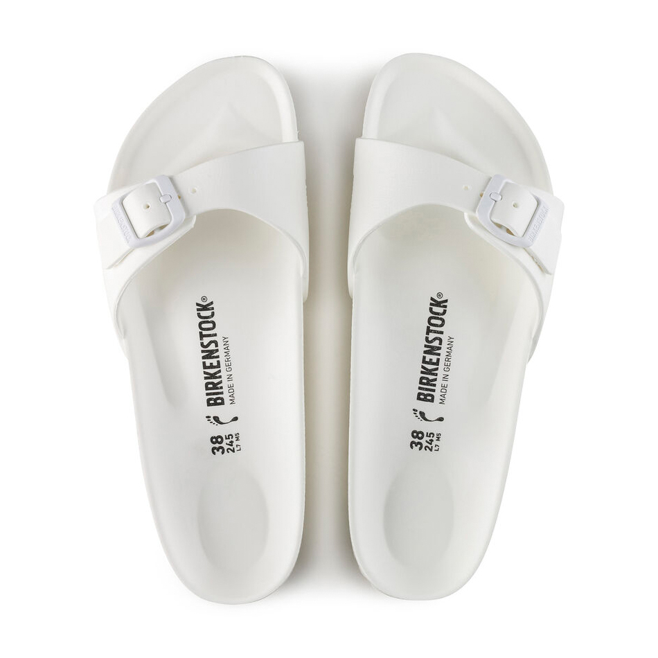 Birkenstock Madrid EVA, un materiale plastico che le rende perfette per andare in piscina o al mare. La pregiata plastica EVA, inodore e priva di sostanze nocive, riunisce in sé molte caratteristiche positive: è molto leggera, estremamente elastica, ammortizzante y dermoaffine. Plantare BIRKENSTOCK dalla forma anatomica in EVA Tomaia, sottopiede, suola: EVA creata da un pezzo unico Dettagli: impermeabile, lavabile, ultraleggero