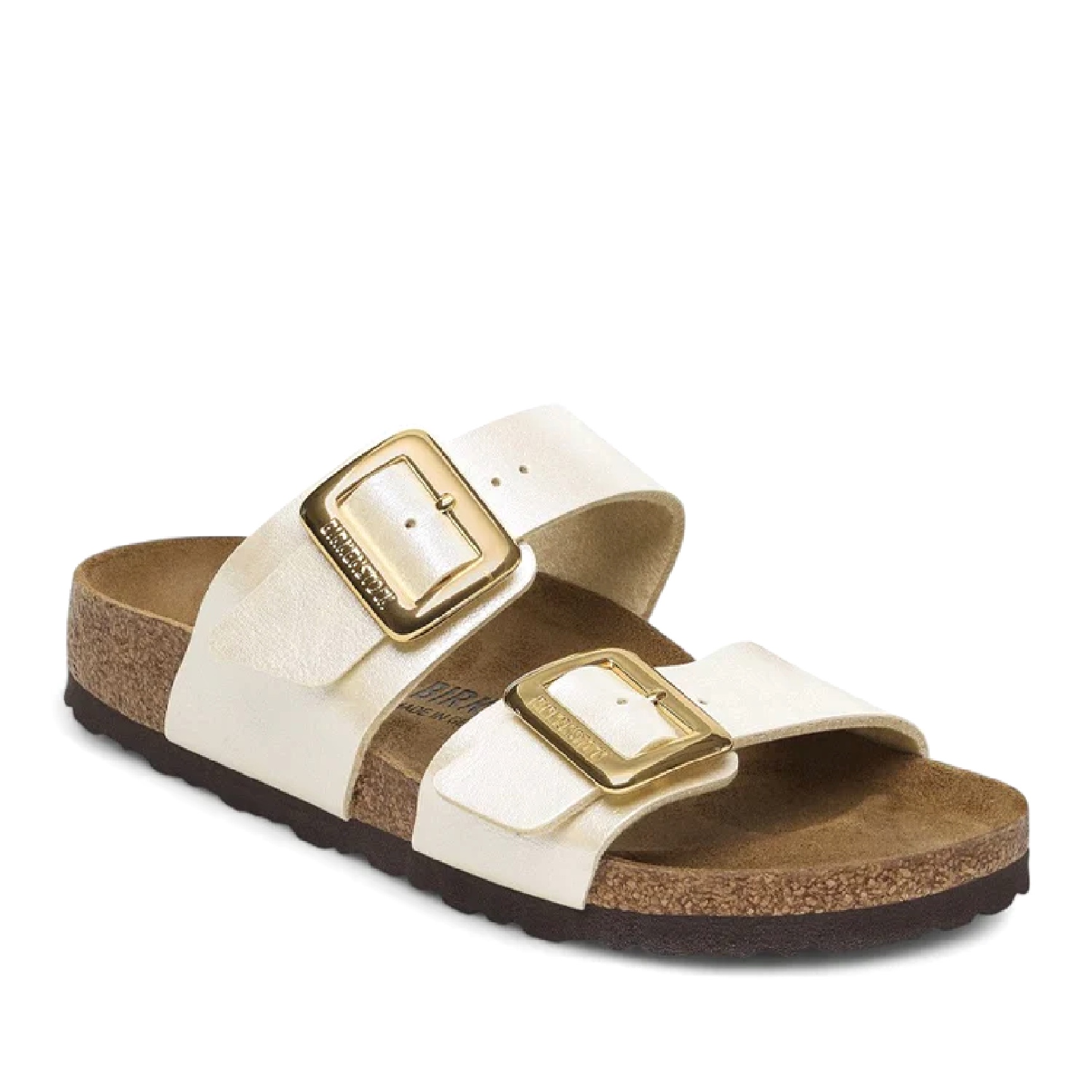 BIRKENSTOCK Sydney dimostra che la moda e la funzionalità possono andare di pari passo. Con i suoi due semplici cinturini, è un vero successo con le donne che vogliono sia l'alta moda che il comfort. Questa versione sandalo ha una finitura setosa. Le fibbie imbottite lucide e delicatamente arrotondate sono particolarmente accattivanti. La tomaia è realizzata in materiale sintetico adatto alla pelle e resistente Birko-Flor.