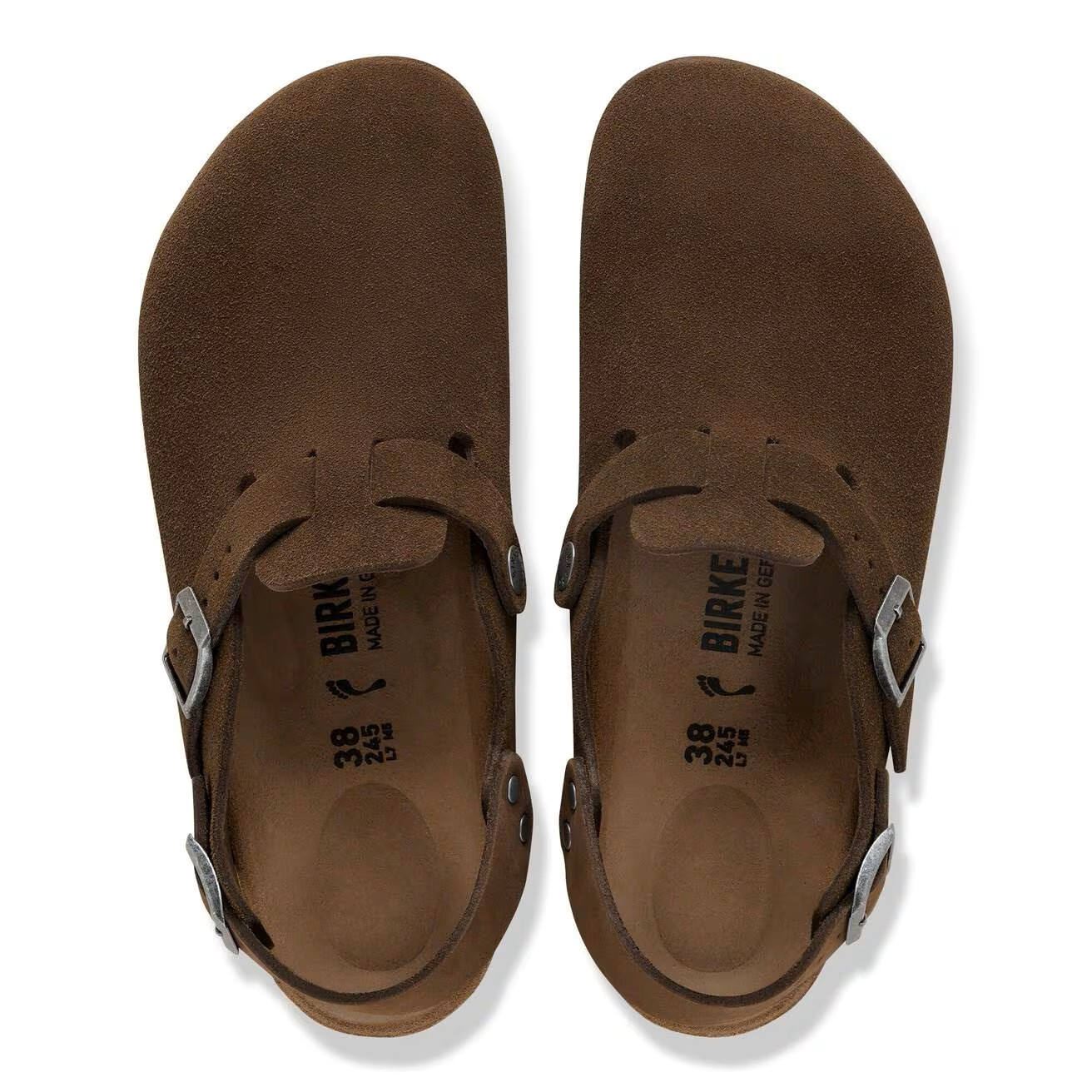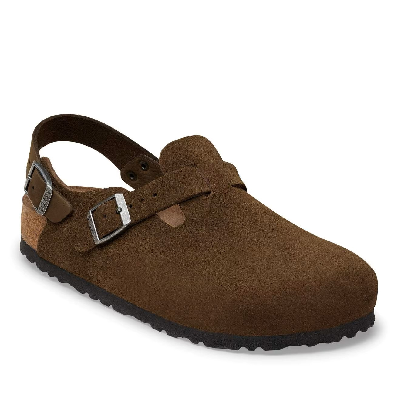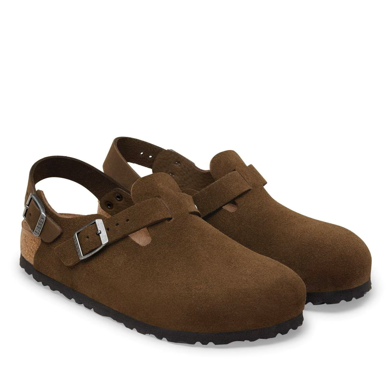 BIRKENSTOCK Tokio è una variazione del classico Boston. Il modello è caratterizzato dal cinturino per il tallone e può essere indossato tutto l’anno. La tomaia è in pelle scamosciata particolarmente morbida che aderisce al piede come una seconda pelle.