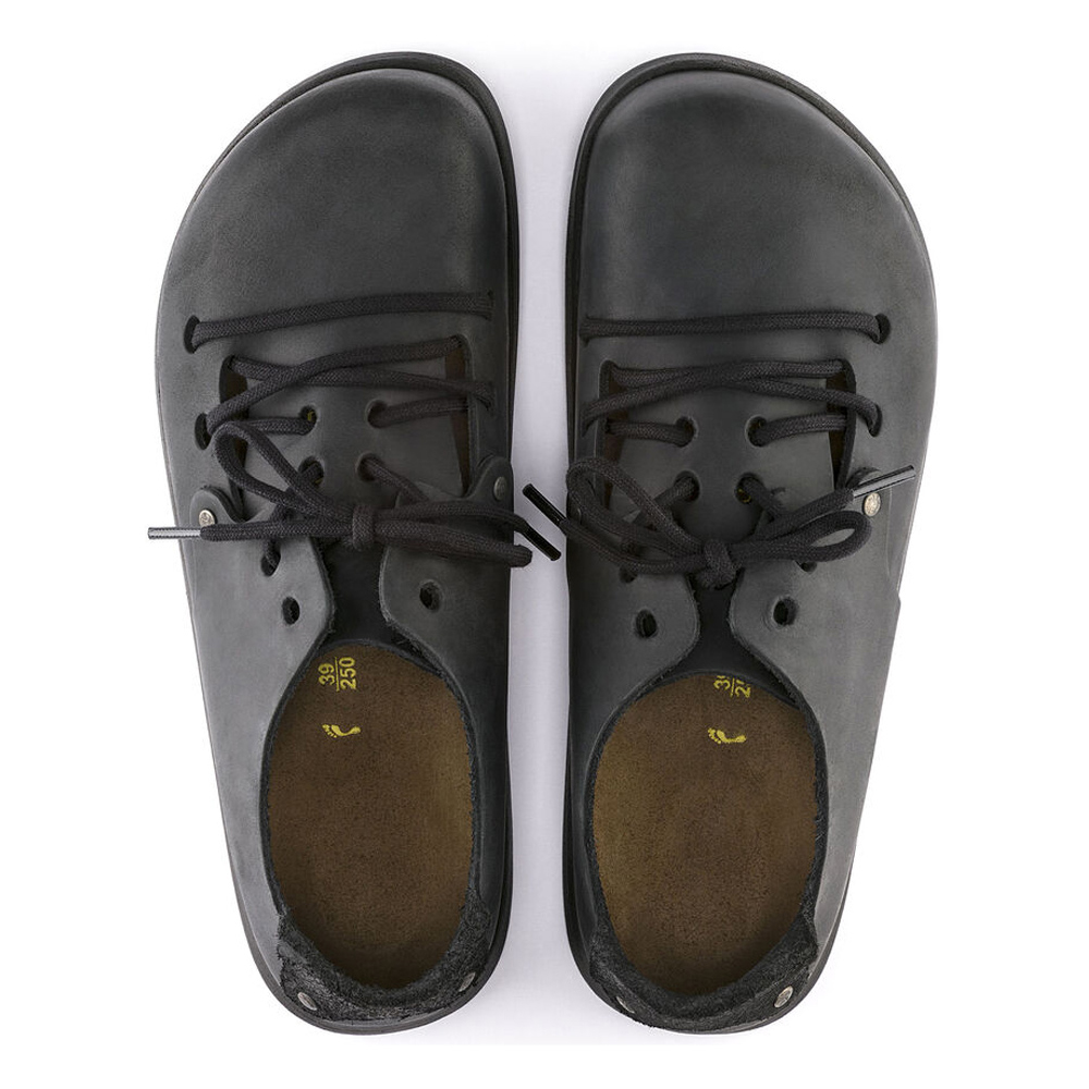 Birkenstock Montana. Semplice, ma raffinata! La scarpa bassa Birkenstock Montana presenta una tomaia speciale assolutamente priva di cuciture. Made in Portugal, due rivetti e l'originale allacciatura tengono insieme entrambe le varie parti della tomaia. La tomaia è in pelle Nabuk particolarmente spessa, oleata e lavorata senza cuciture.