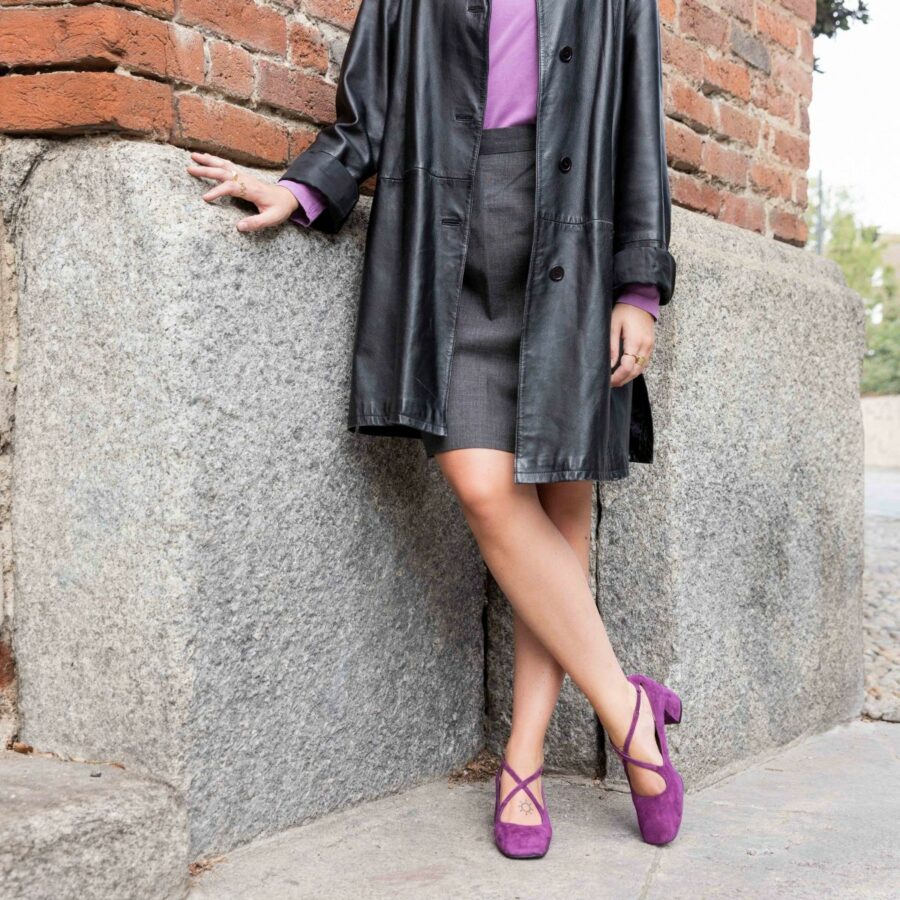 Un altro trend protagonista della stagione è la presenza nelle scarpe di dettagli unici che si aggiungono in contrasto alle linee pulite ed essenziali dei modelli tradizionali. Catene, fibbie, e texture originali offrono un tocco di personalità e originalità. In questo contesto, non possiamo che citare la nostra Décolleté Dolores verde per la sua texture delicata e la sua piacevole sensazione al tatto. Realizzata in camoscio verde ha un aspetto molto lussuoso, ma grazie ad alcuni dettagli, come il tacco medio, rimane estremamente comoda e versatile, facilmente abbinabile sia ad abiti da sera, che ad abiti da lavoro e pantaloni eleganti, per un look sofisticato e glamour. Oppure la Décolleté Petra viola, che si caratterizza per la particolarità dei cinturini incrociati sul collo del piede, è la scelta perfetta per illuminare i tuoi outfit autunnali e dargli un’allure chic.