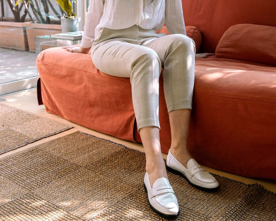 Altro outfit casual ideale per una passeggiata in città: la giacca color Very Peri abbinata al classico jeans quattro stagioni è davvero a prova d’errore. La scarpa ideale è il Mocassino Penny Bianco in pelle. Questo loafer da donna non ha né lacci né chiusure ed è semplicissimo da indossare. Il colore perfetto con un outfit che celebra la tonalità Pantone 2022 è proprio il bianco, versatile e facile da accostare a tantissimi altri look sui toni del blu e del viola.