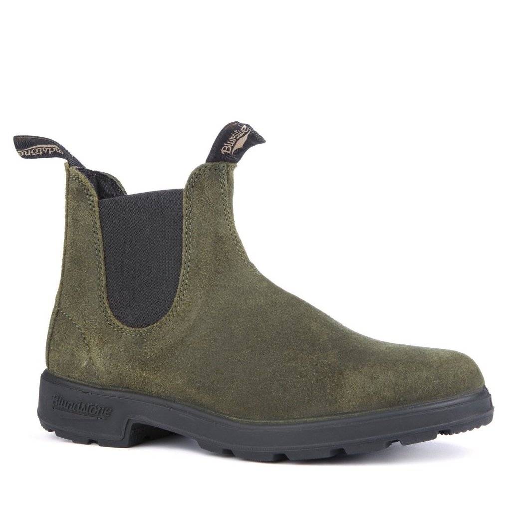# 1615 ORIGINALS OLIVE SUEDE Realizzato in camoscio cerato resistente all'acqua color olive, il modello #1615 si distingue per eleganza e comfort. Gli stivaletti modello Blundstone #1615 sono realizzati con tomaia liscia in pelle scamosciata resistente all'acqua, in un caldo e fashion colore verde oliva scuro. Design ispirato ai Chelsea boots con classici elastici laterali, si elevano su di una comoda suola in gomma antiscivolo con carrarmato. Dotati di linguetta frontale e posteriore per facilitare la calzata, sono scarpe comode e alla moda della serie Originals, per look casual chic.