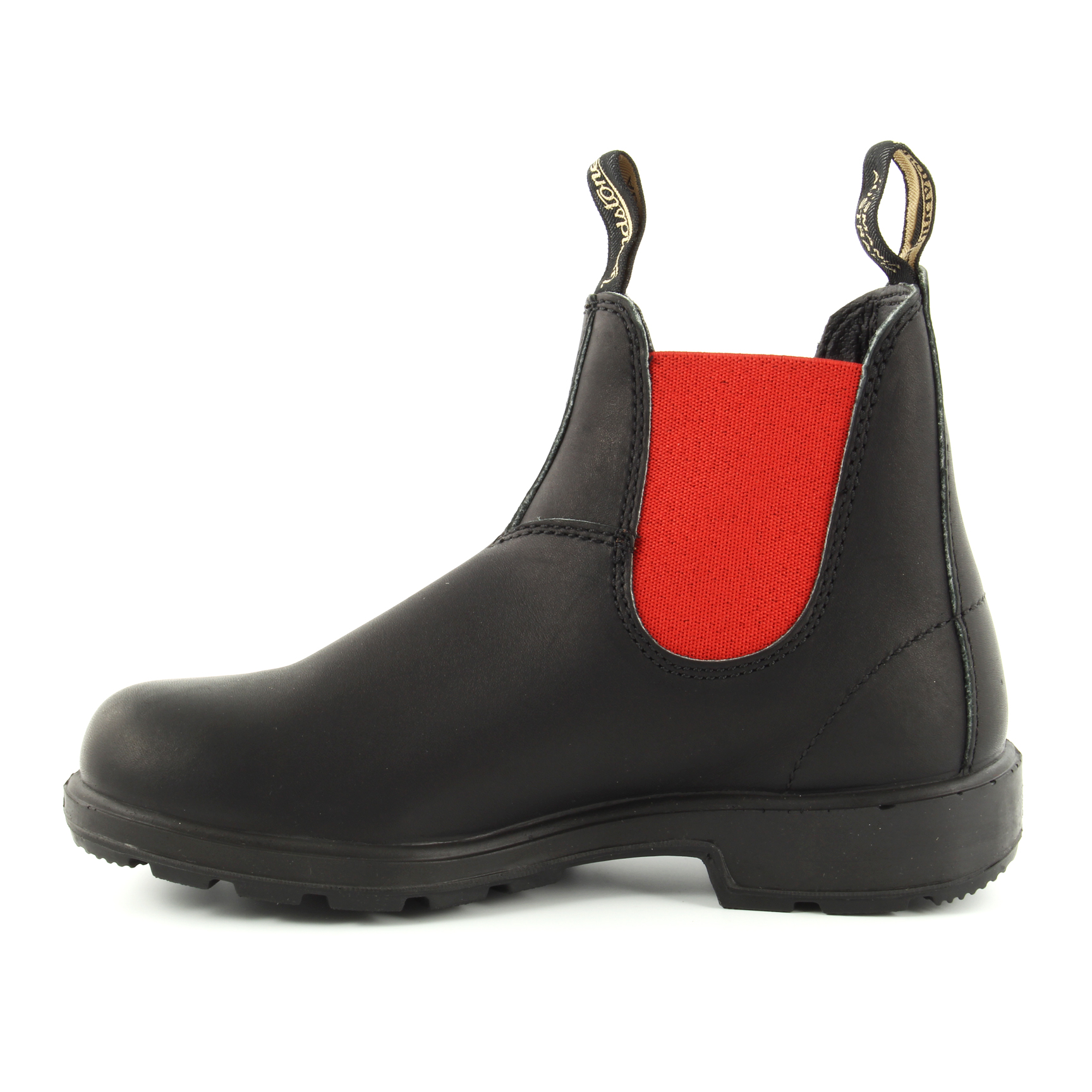# 508 ORIGINALS BLACK & RED Il modello #508, rivisitazione di un'icona Blundstone, sfoggia un accattivante elastico rosso e tutte le caratteristiche che ci si aspetta dalla serie Originals. Rendi unico il tuo look indossando gli stivaletti in stile Chelsea modello Blundstone #508, realizzati in pelle nera resistente all'acqua con elastici laterali rossi. Presentano tomaia liscia con impunture frontali e sul tallone tono su tono. Linguetta frontale e posteriore per una calzata facile, suola in gomma antiscivolo dentata e logata. Scarpe comode e casual della serie Originals dal tocco brioso e fashion.