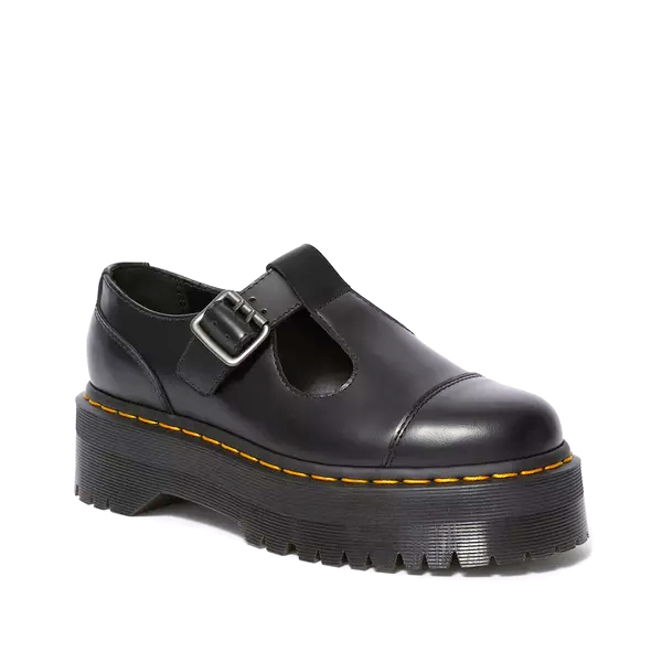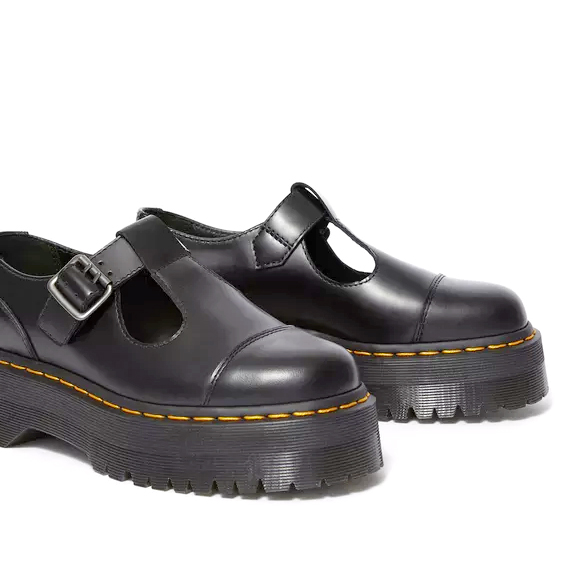 Bethan, la nuova scarpa Mary Jane, poggia su una suola dall'altezza extra. Silhouette già presente negli archivi DM's da anni, viene qui riproposta insolitamente abbinata ad un platform in ogni caso di grande appeal e successo. Il suo profilo lucido e netto e il cinturino a T, donano a questo modello un tocco elegante e senza tempo, mentre il rivestimento interno di pelle va a completare il profilo di una scarpa di alta qualità.