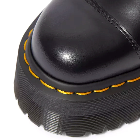 Una variazione sul classico cuoio Dr. Martens: resistente, con una finitura liscia e lucida.