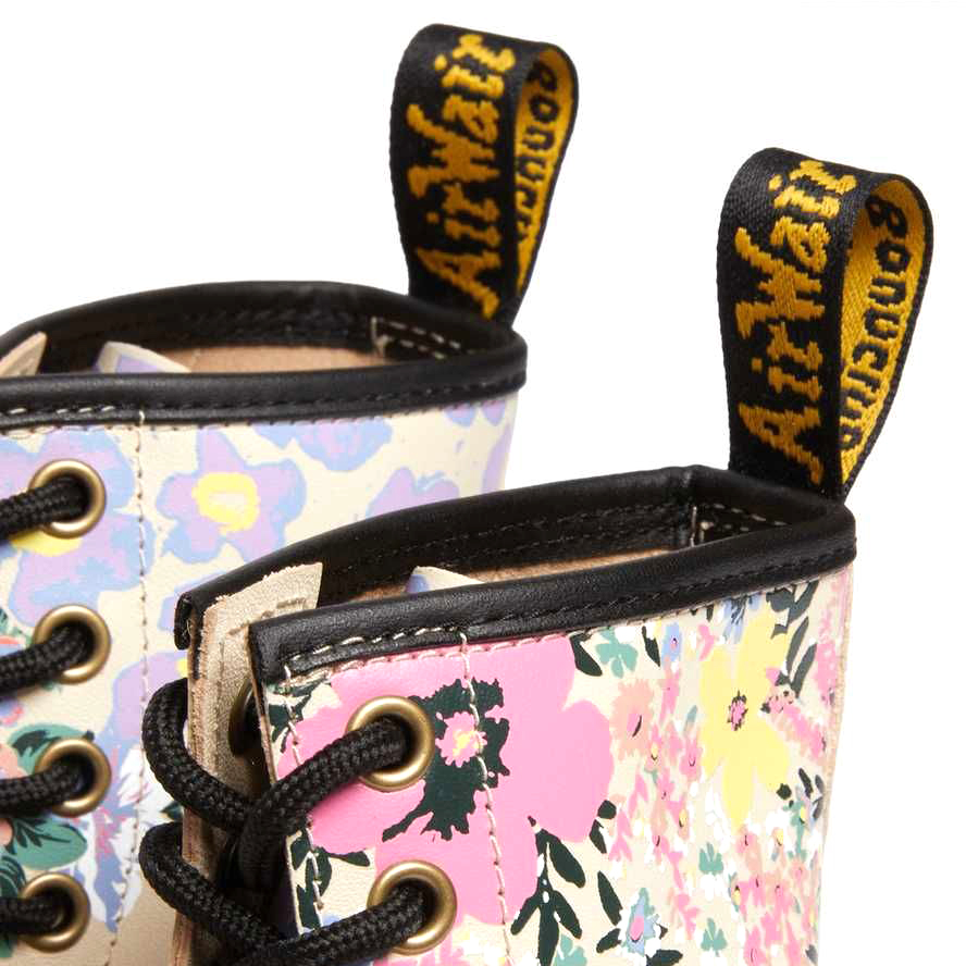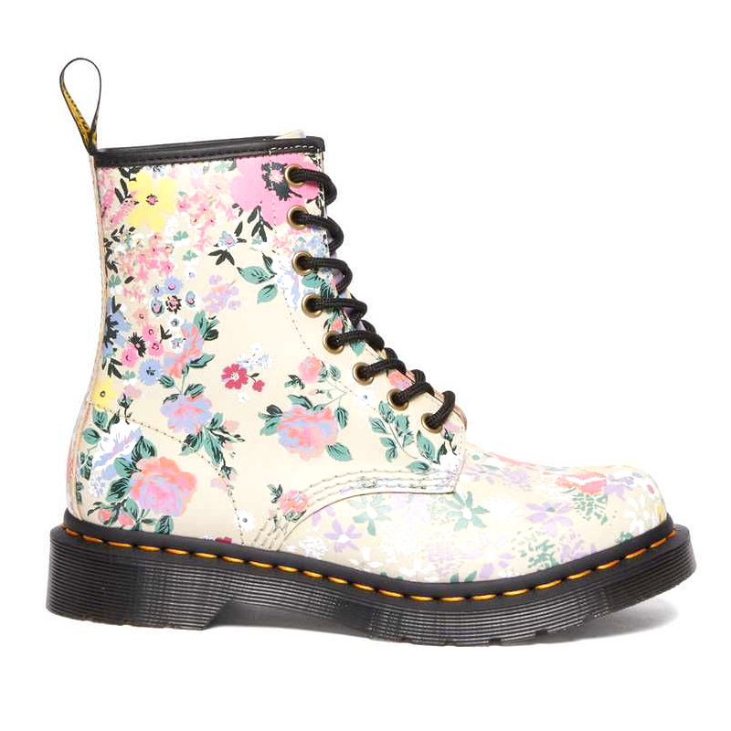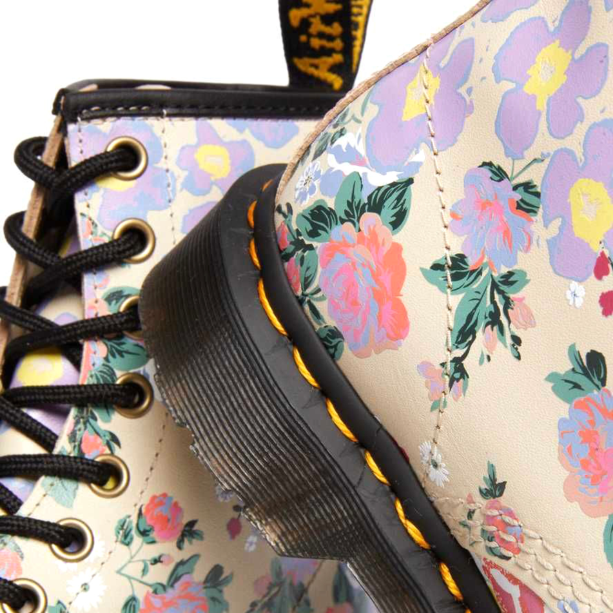 Stivaletto 1460 Pascal, Dr.Martens, ridisegnato con l'ultima serigrafia floreale selezionata da Dr.Martens per la nuova stagione primaverile, abbinata alla tinta pastello pergamena. Questi stivali rimangono fedeli alla silhouette 1460 e sono caratterizzati da tutto il DNA DrMartens: cuciture gialle sul guardolo, una fettuccia posteriore con logo AirWair e una robusta suola a cuscinetto. La stampa è realizzata sul pellame Il pellame Backhand morbido e resistente. Per chi si vuole distinguere.