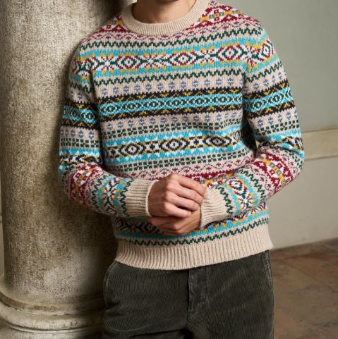 Maglia in morbido tessuto con fantasia jacquard dal design originale.