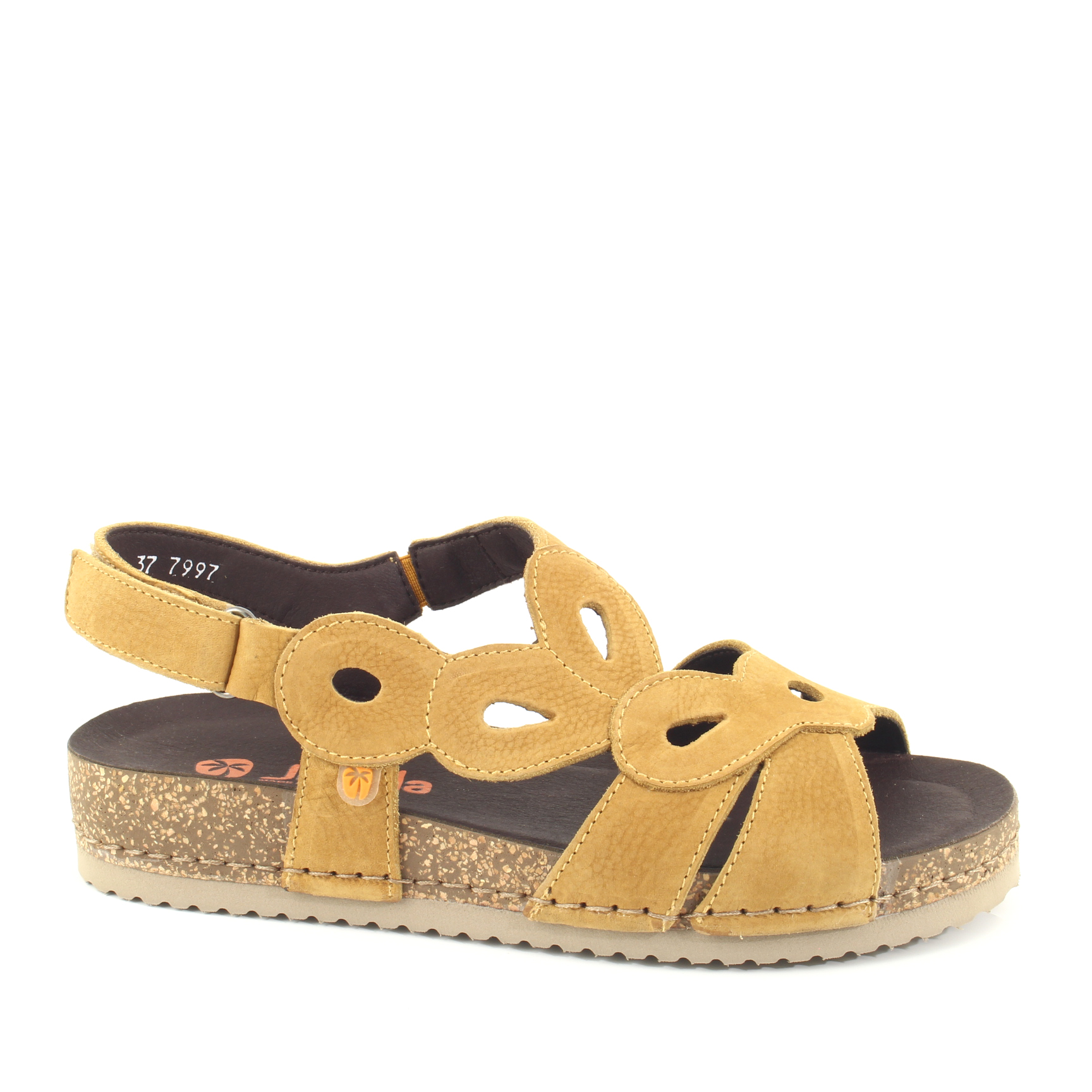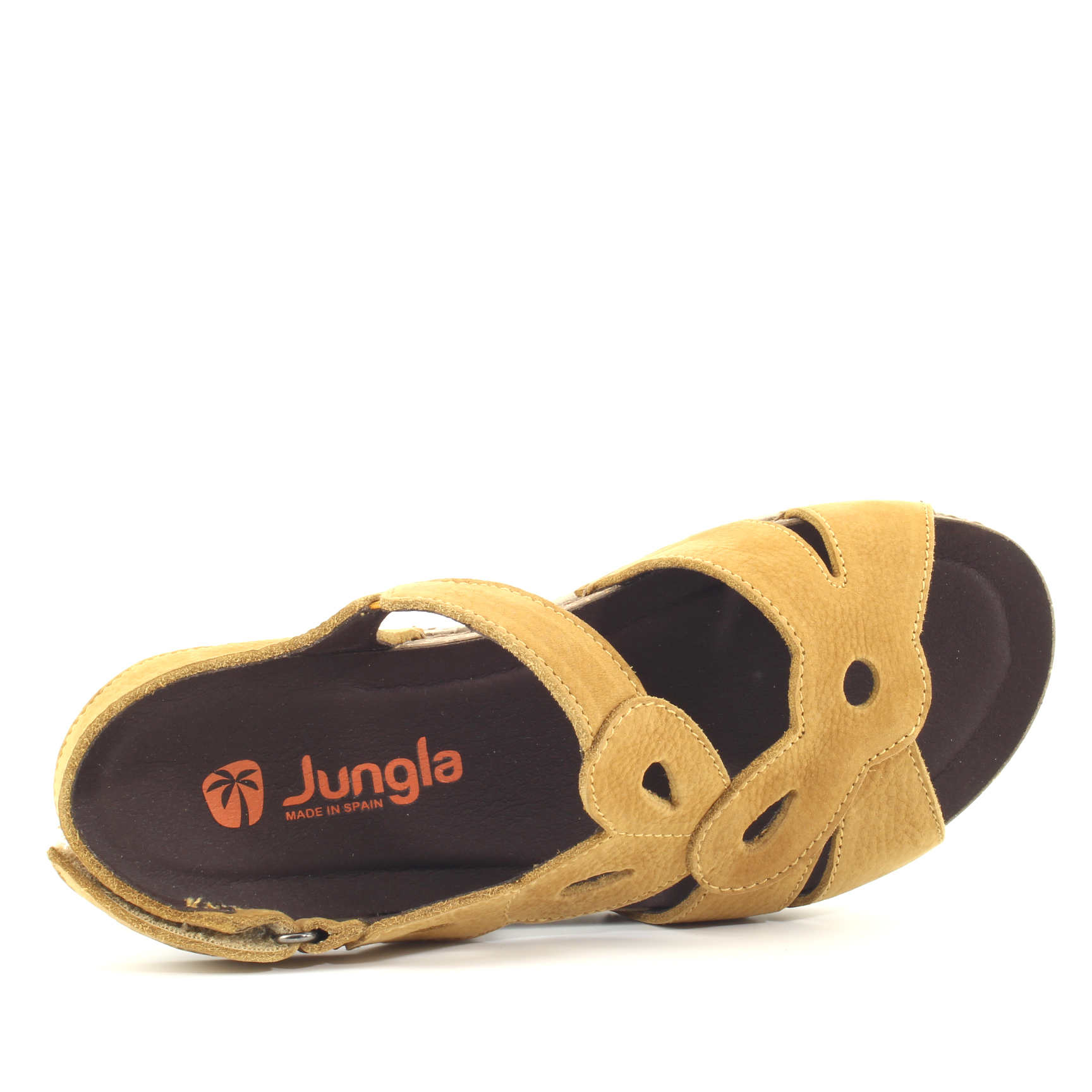 Sandalo 7997, Jungla. Sandalo donna in nabuk con sottopiede imbottito anatomico e particolarmente flessible, offre un comfort unico. Il cinturino che passa sul collo del piede ha un piccolo elastico che consente una calzata perfetta. Un sandalo che ti accompagnerà per tutto il periodo estivo sia in città che in vacanza. Made in Spain.