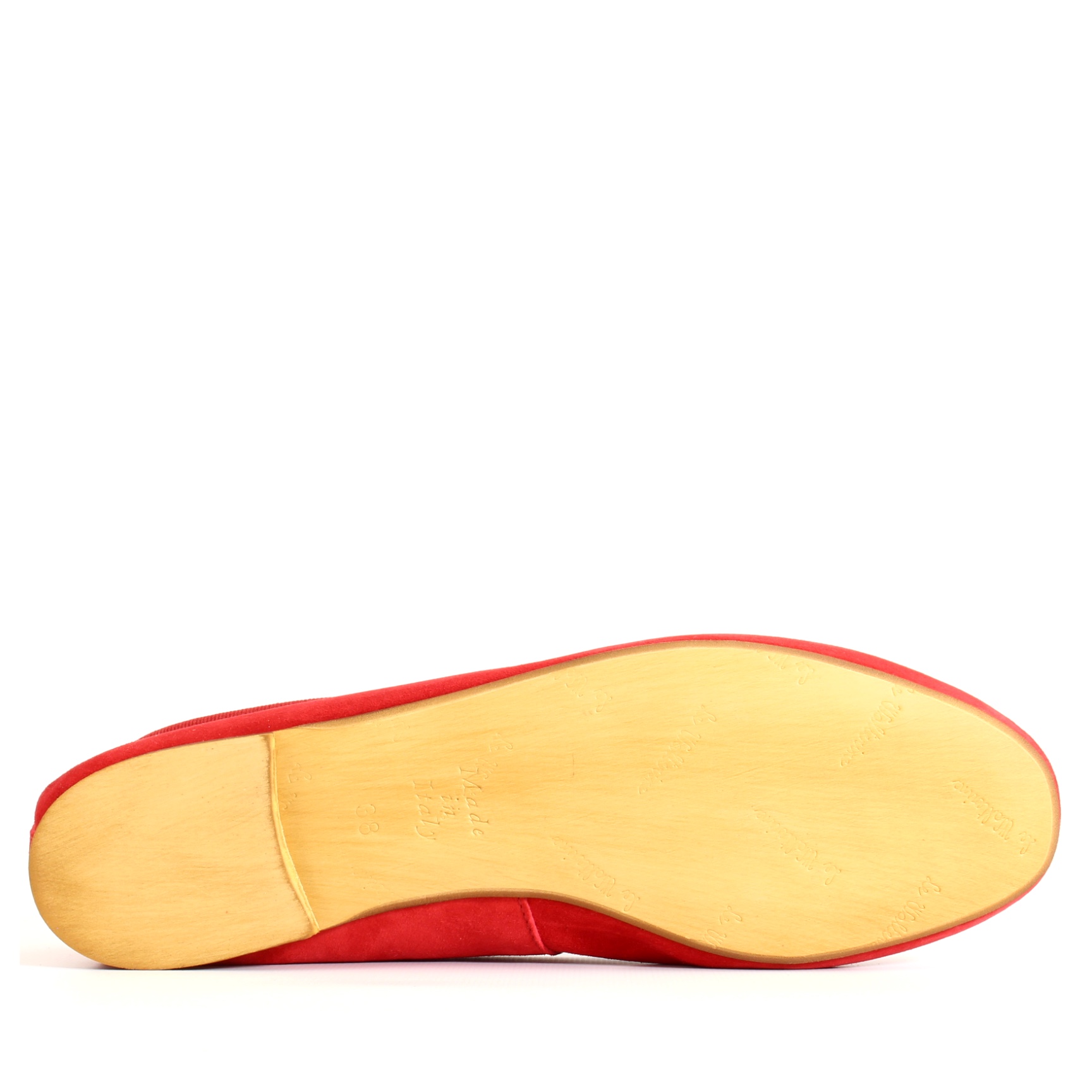 Ballerina flat con zeppa interna di 2 cm. In camoscio con sottopiede in tinta, proposta in una vasta gamma di colori, sempre con fiocchetto regolabile.