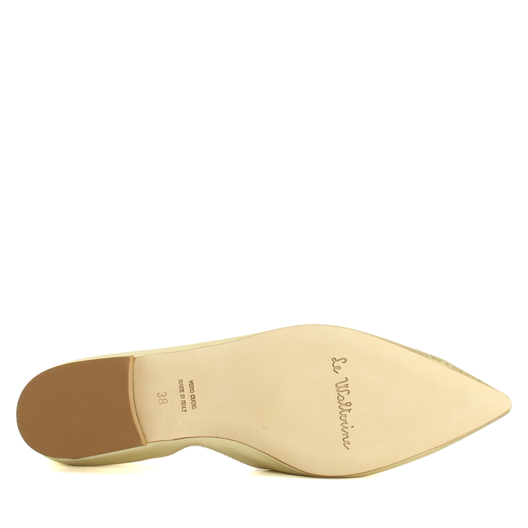 Il risultato è una ballerina luminosa e sofisticata, pensata per chi ama distinguersi con discrezione, ma senza rinunciare a un tocco di carattere.