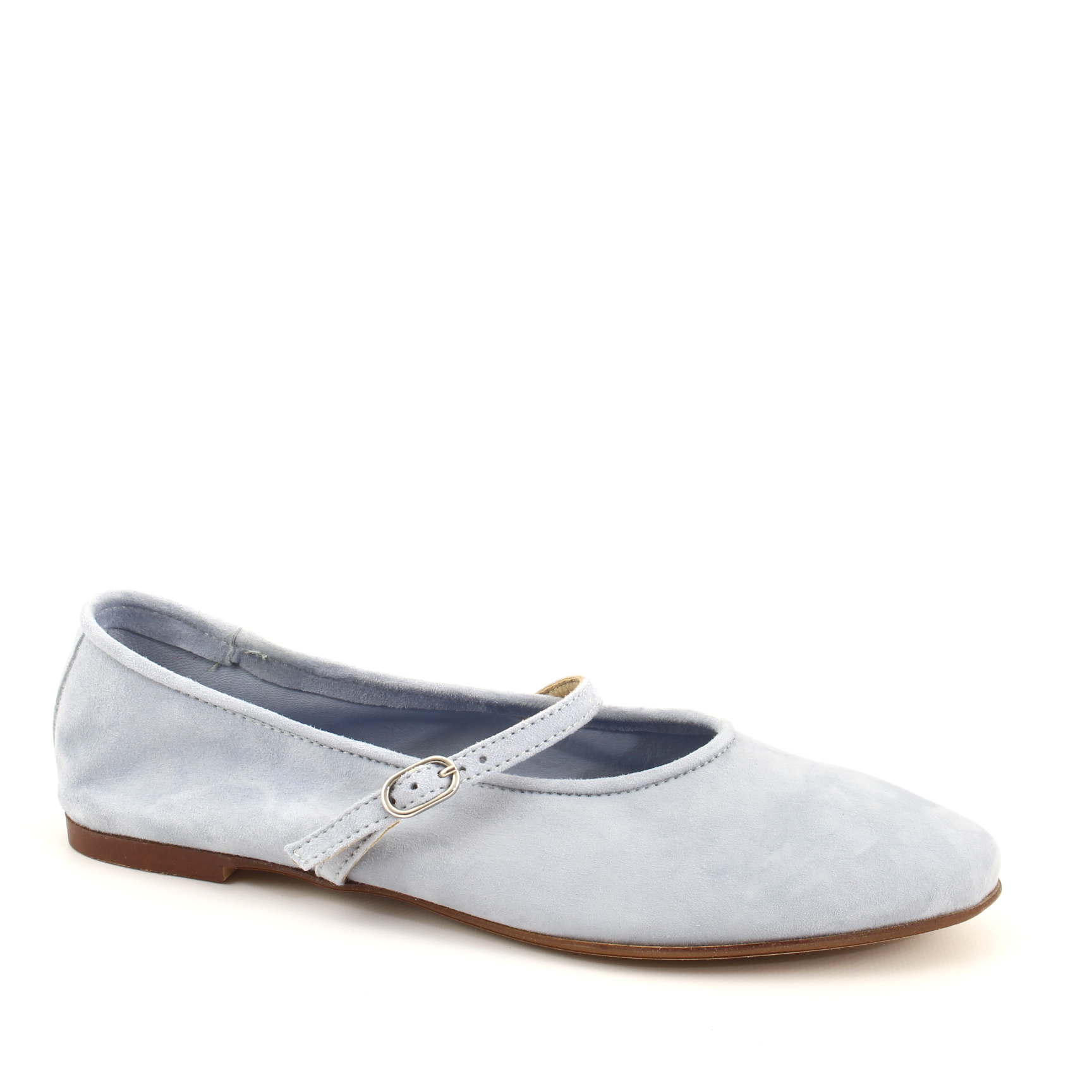 Questa ballerina di Le Walterine è un piccolo gioiello di artigianalità italiana! Realizzata in morbido camoscio color jeans, ha un design classico e romantico con cinturino sottile regolabile che dona un tocco retrò ed elegante. La suola sottile e il profilo essenziale la rendono perfetta per un look femminile e senza tempo.