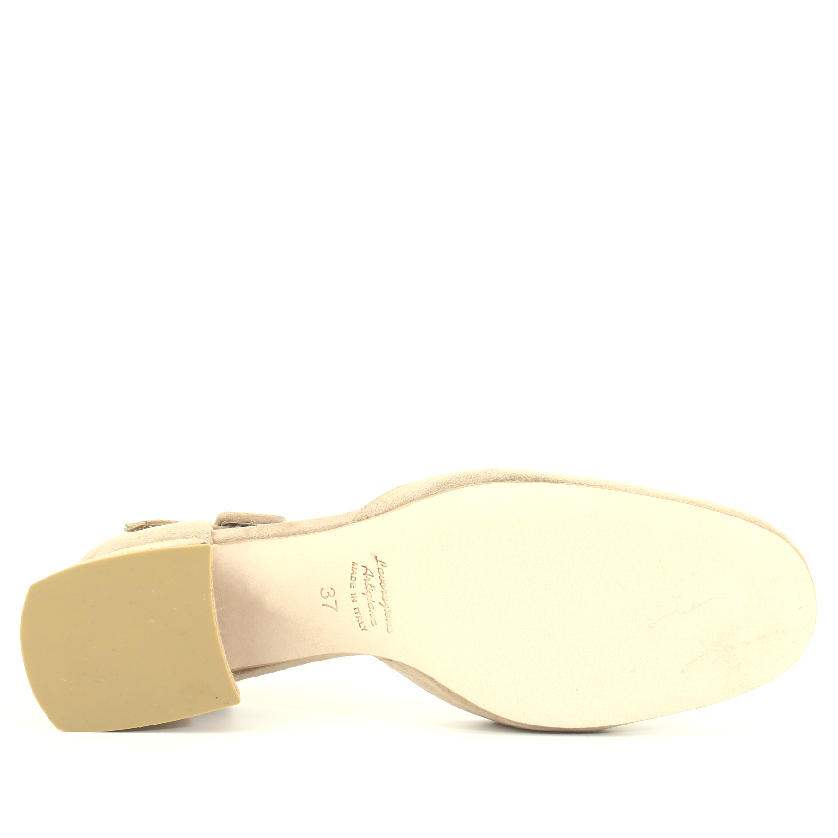 Décolleté beige con cinturino e tacco di 6 cm.