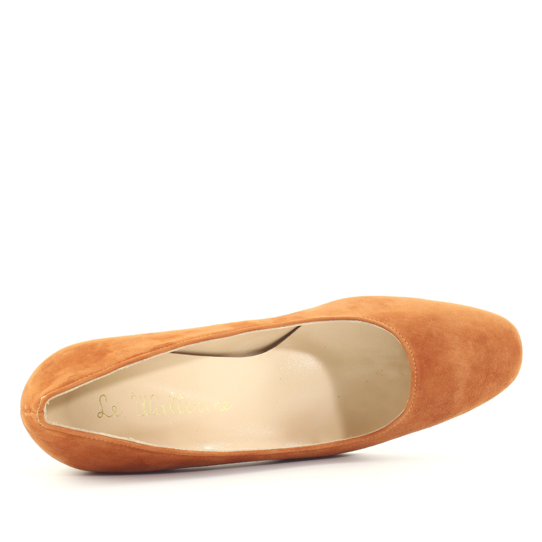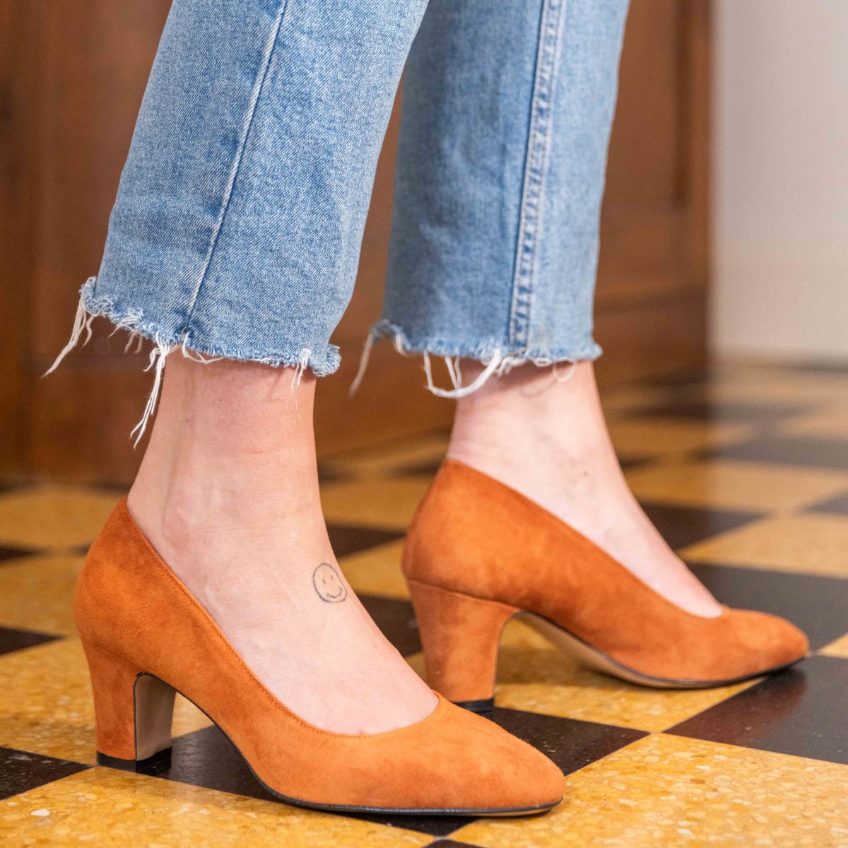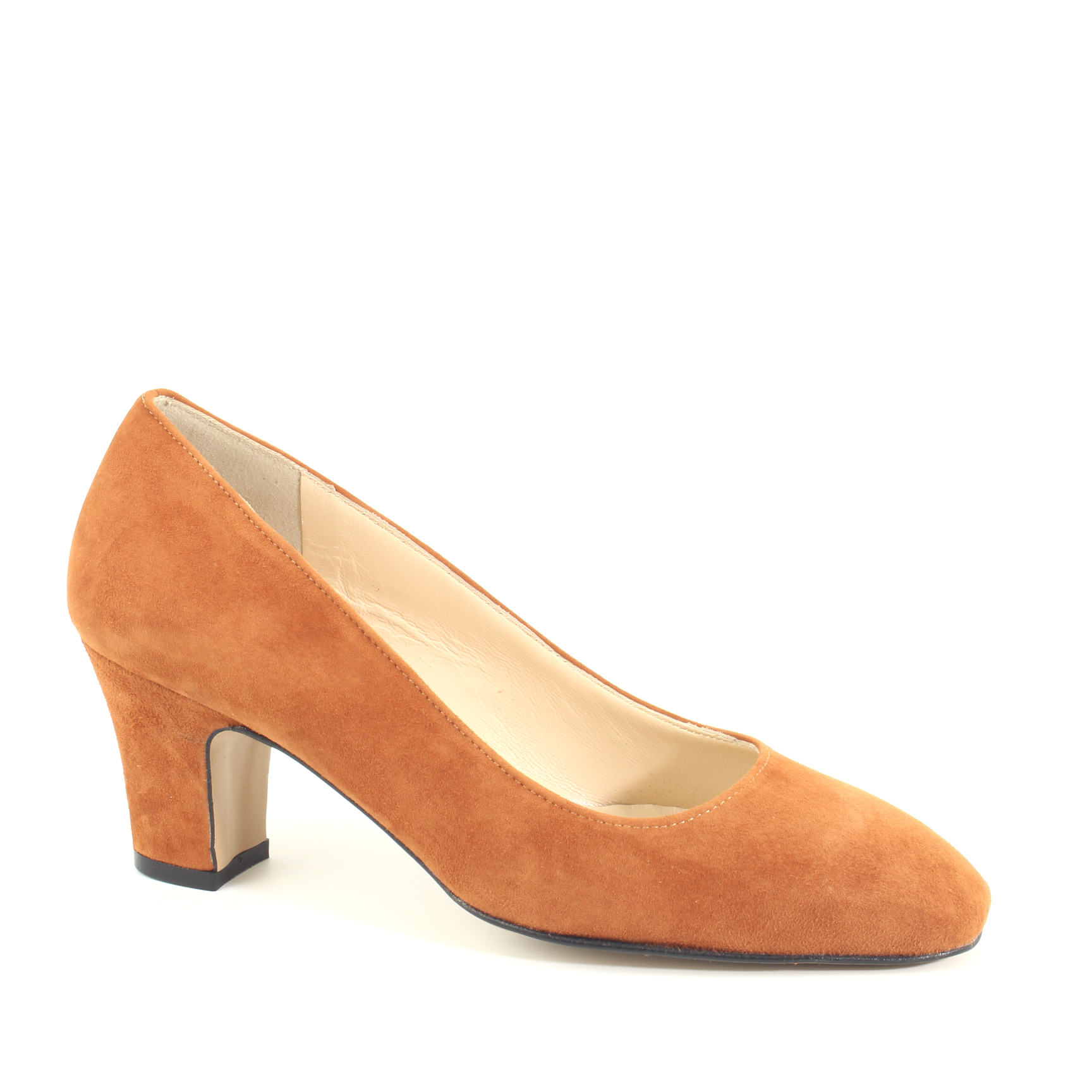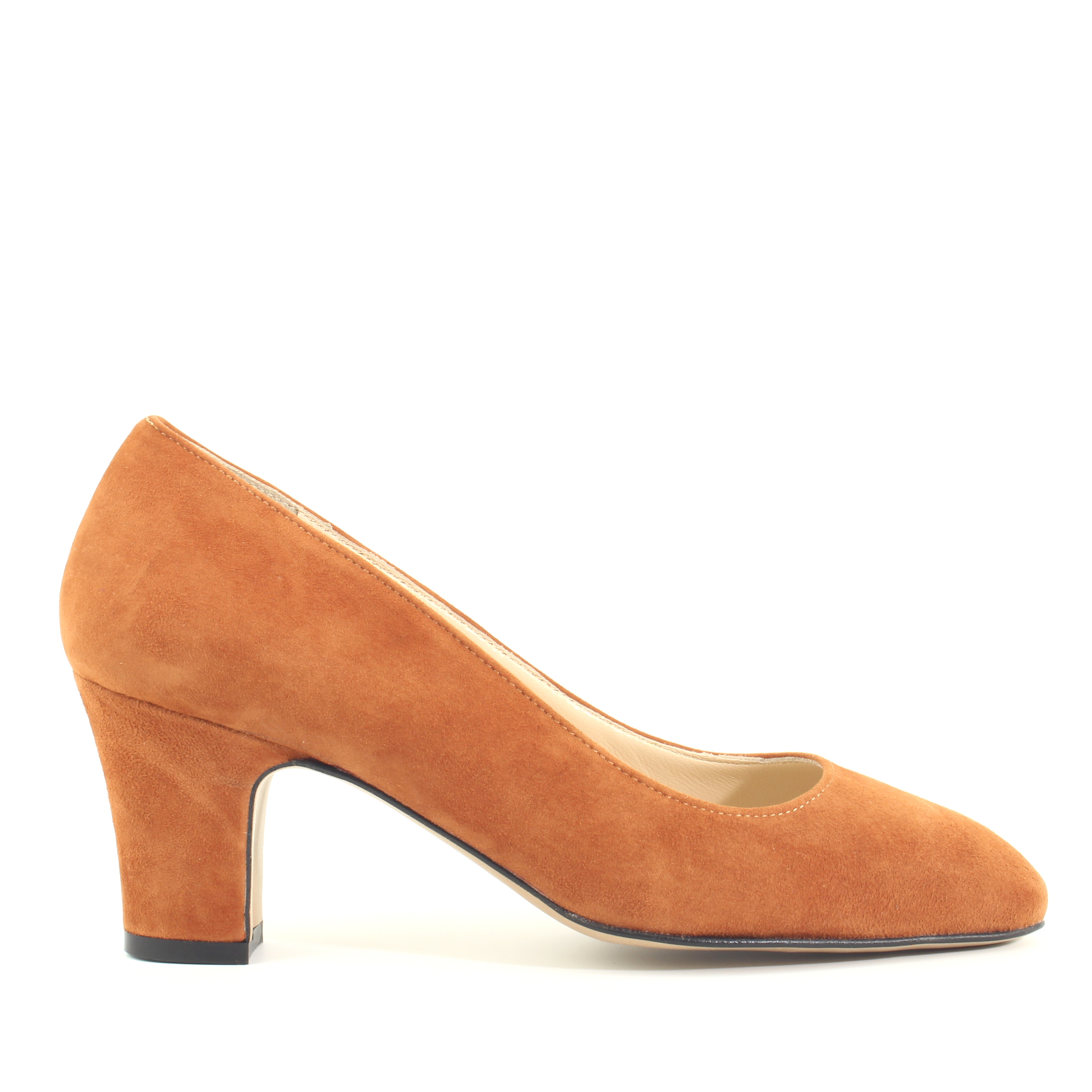 Décolleté in camoscio colore mattone. Una scarpa elegante e raffinata caratterizzata da una tomaia realizzata in camoscio dal colore bruciato, che conferisce un aspetto caldo e avvolgente. Il tacco largo offre stabilità e comfort, rendendo questa scarpa adatta per lunghe camminate o occasioni speciali. Si tratta di un'opzione di calzatura ideale per chi desidera un look sofisticato e confortevole.