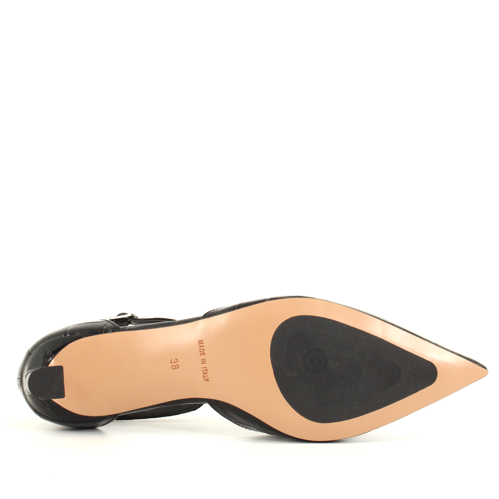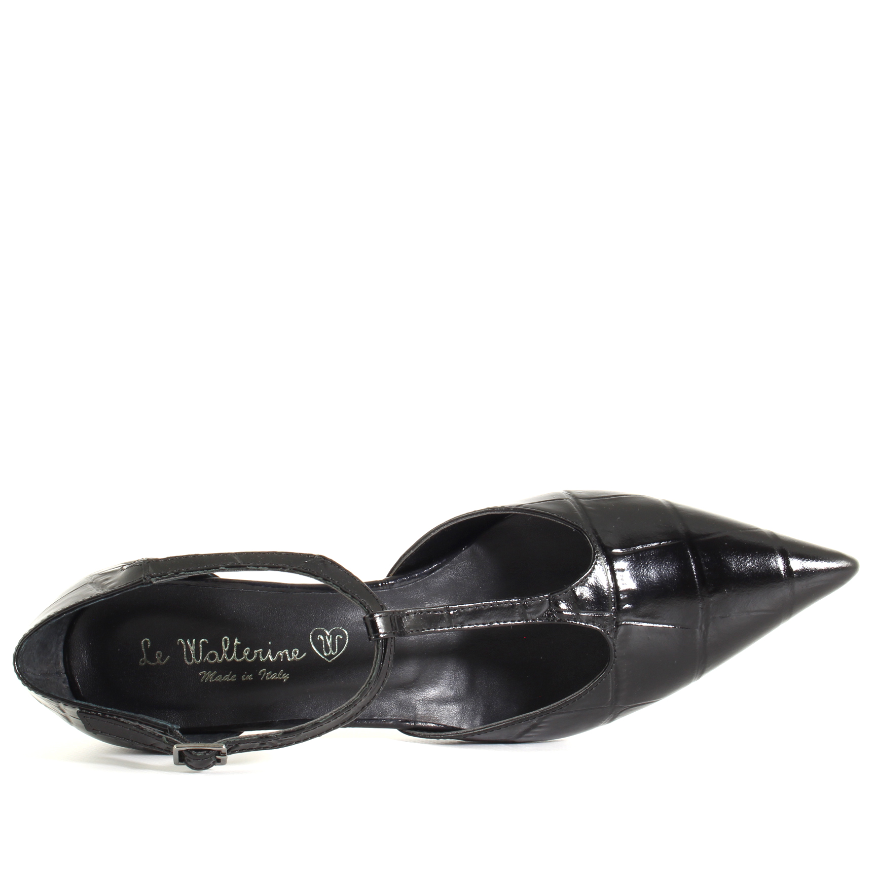 ✨ Décolleté Mary Jane Nancy in Pelle Nera con Effetto Coccodrillo – Le Walterine
