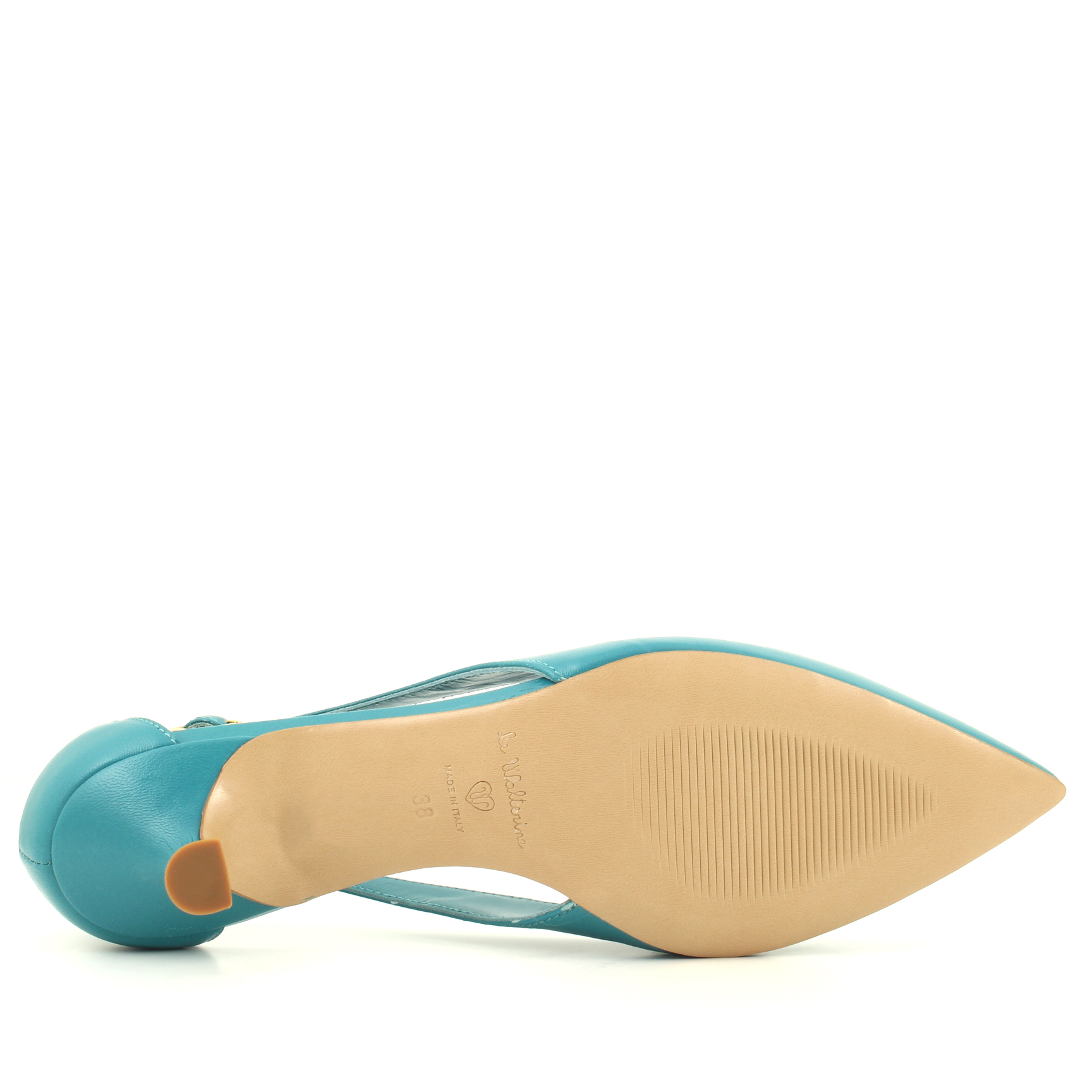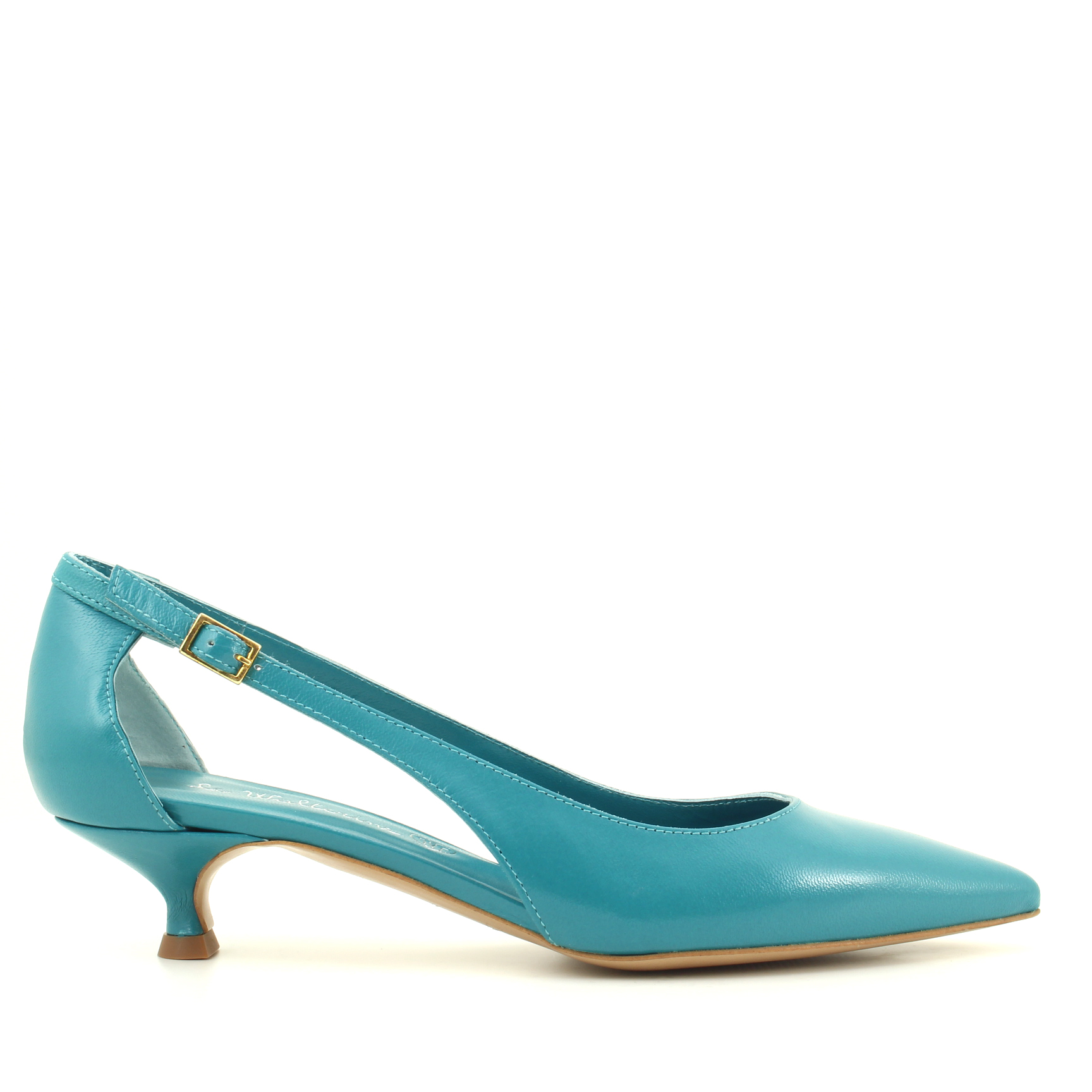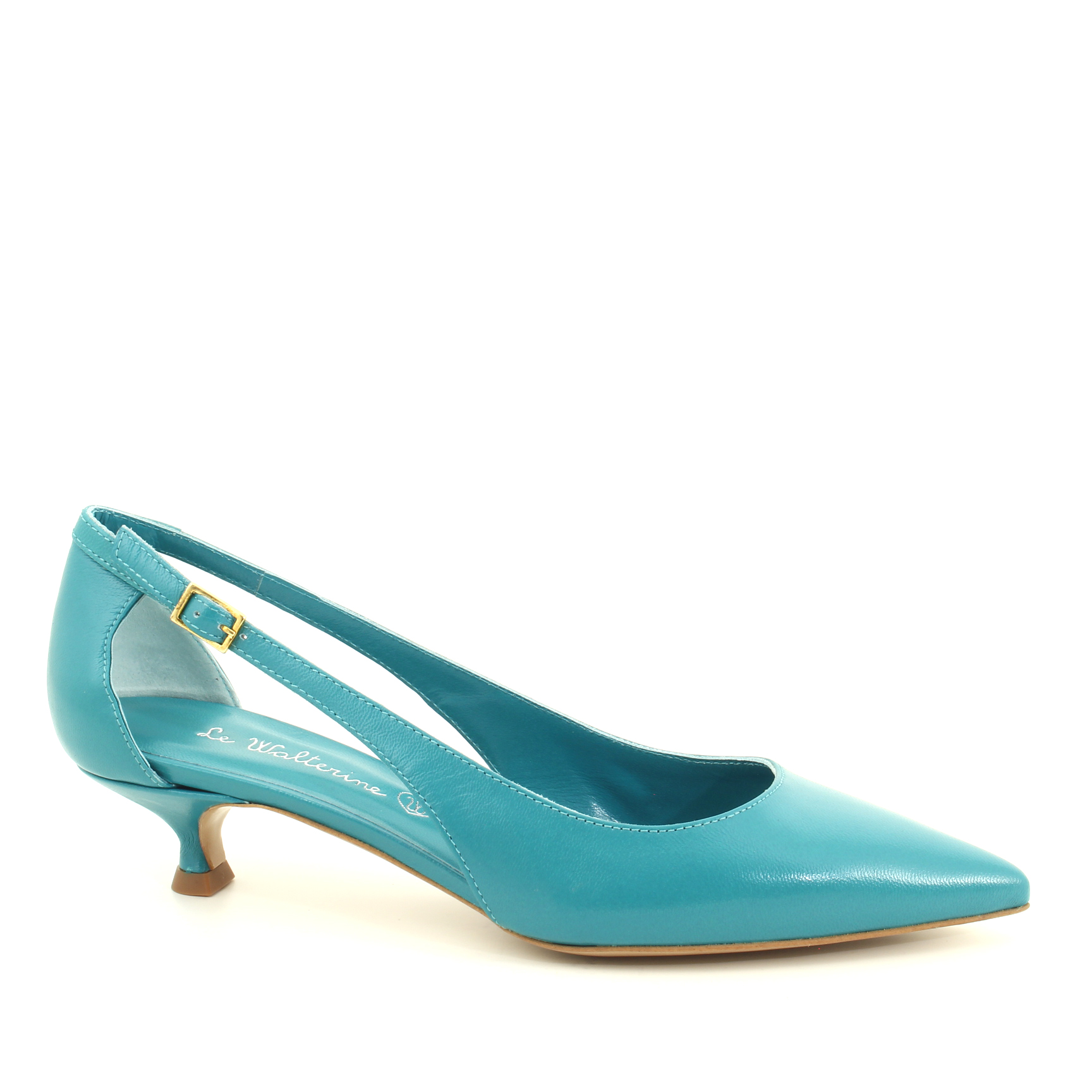 Dècolletè tacco basso forma a punta in pelle di capretto con apertura laterale, elegantissima e femminile. Linea essenziale e tacco 3 cm. Questa decolleté è realizzata con un tacco coda: la suola è un tuttuno con il tacco. Questo modello è proposto in diversi colori basici. Realizzata artigianalmente in Italia.
