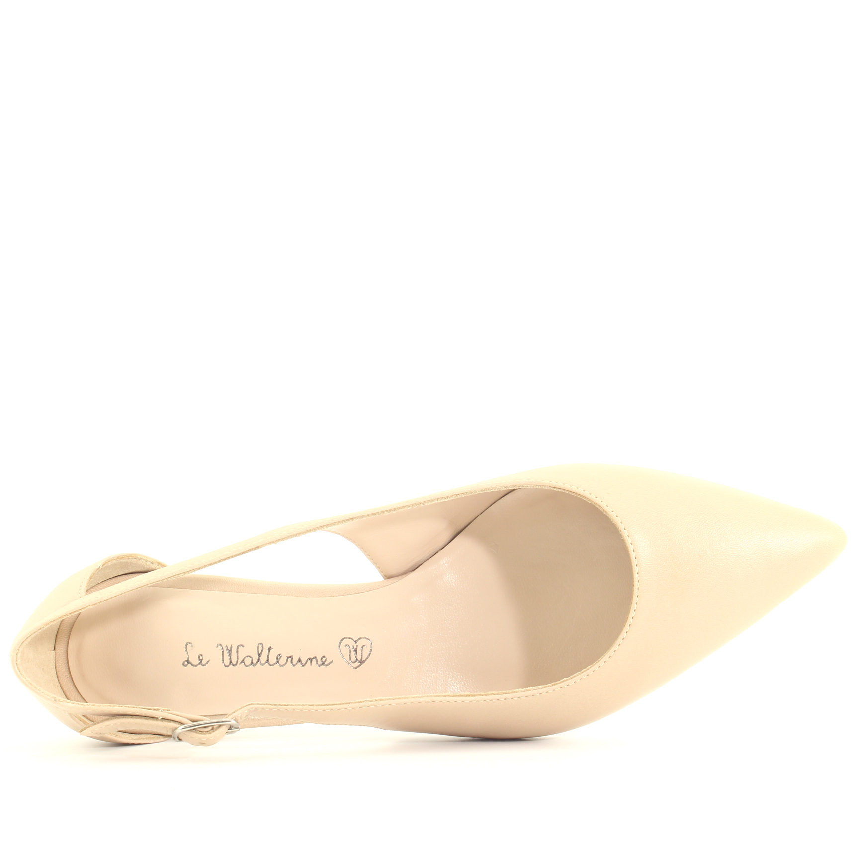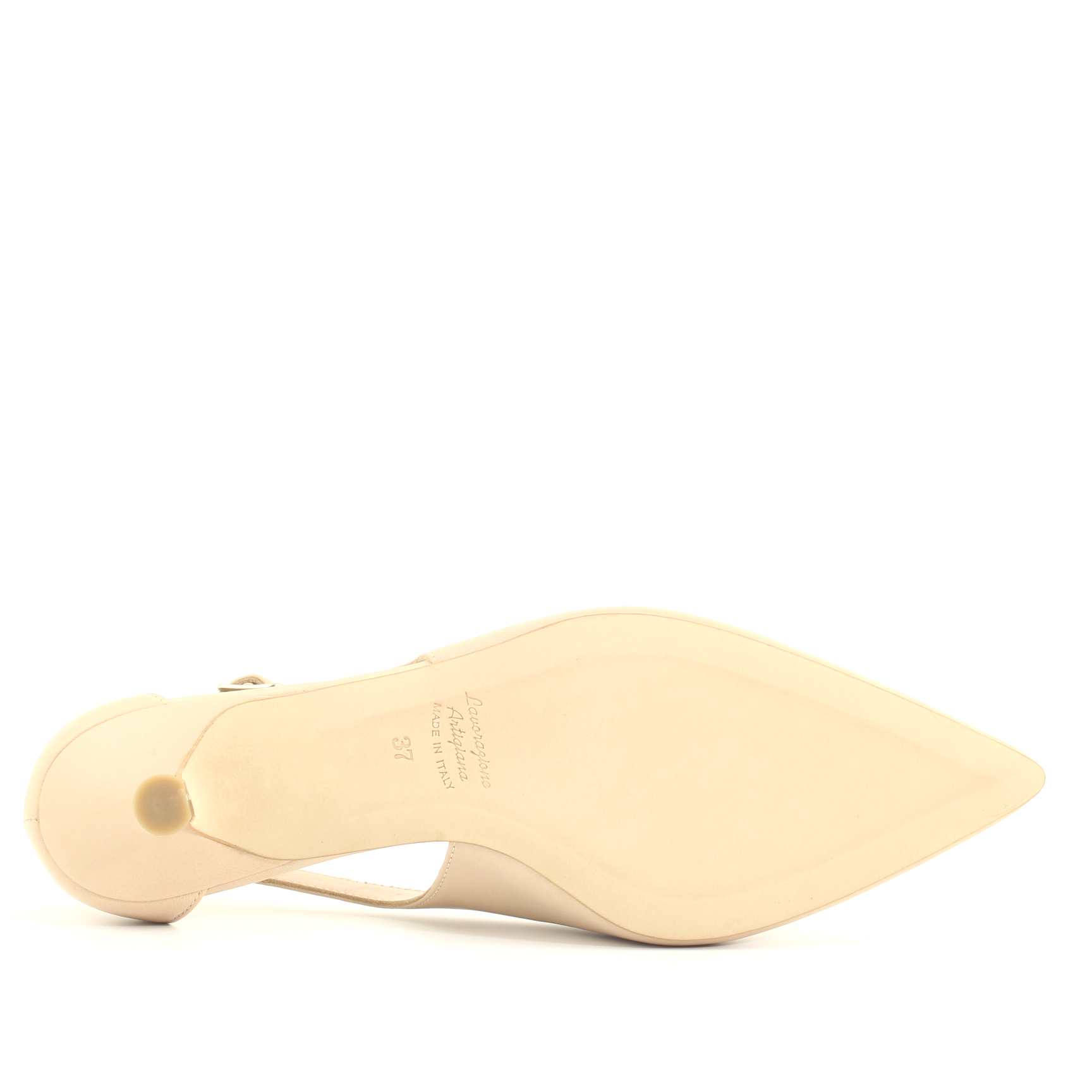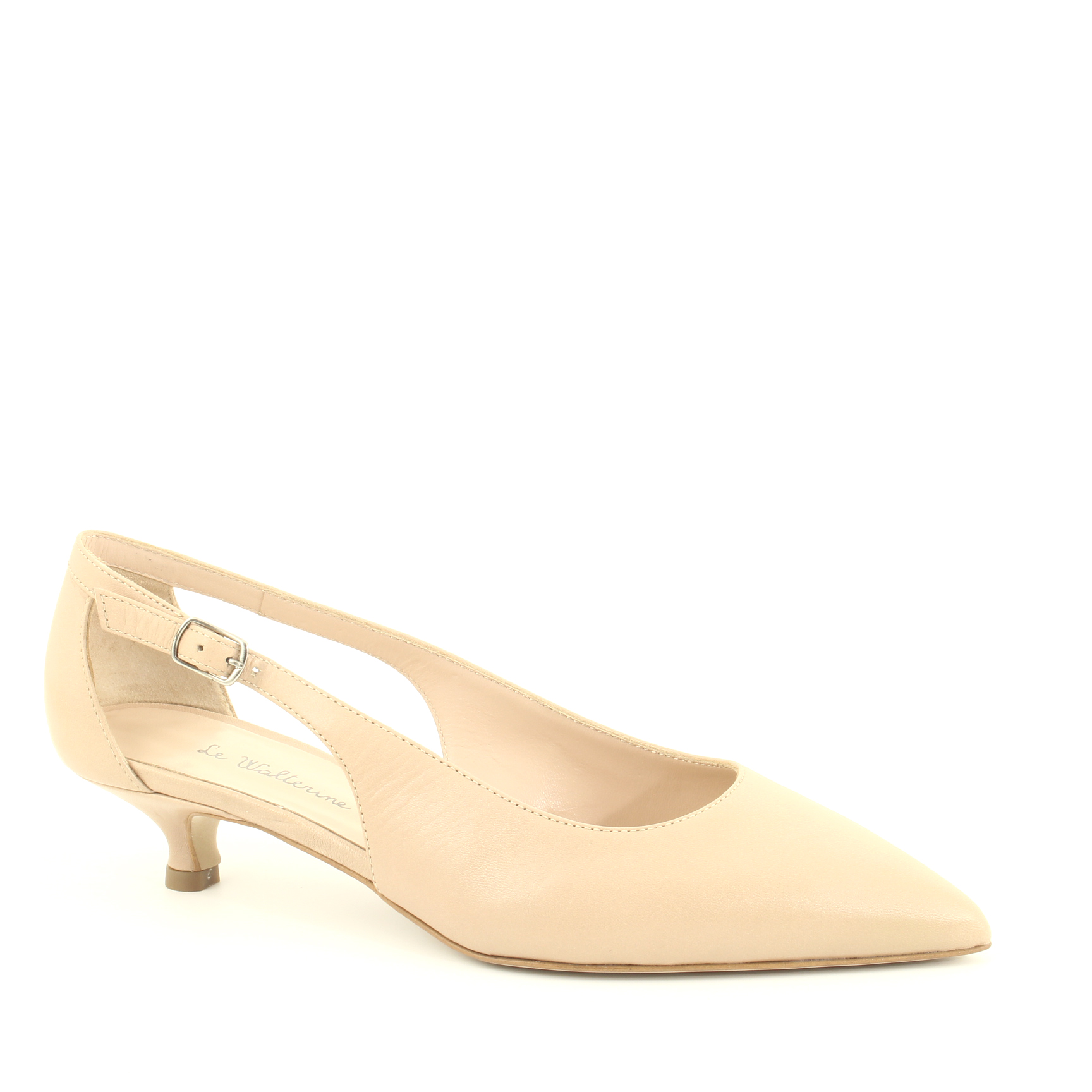 Dècolletè tacco basso forma a punta in pelle di capretto con apertura laterale, elegantissima e femminile. Linea essenziale e tacco 3 cm. Questa decolleté è realizzata con un tacco coda: la suola è un tuttuno con il tacco. Questo modello è proposto in diversi colori basici. Realizzata artigianalmente in Italia.