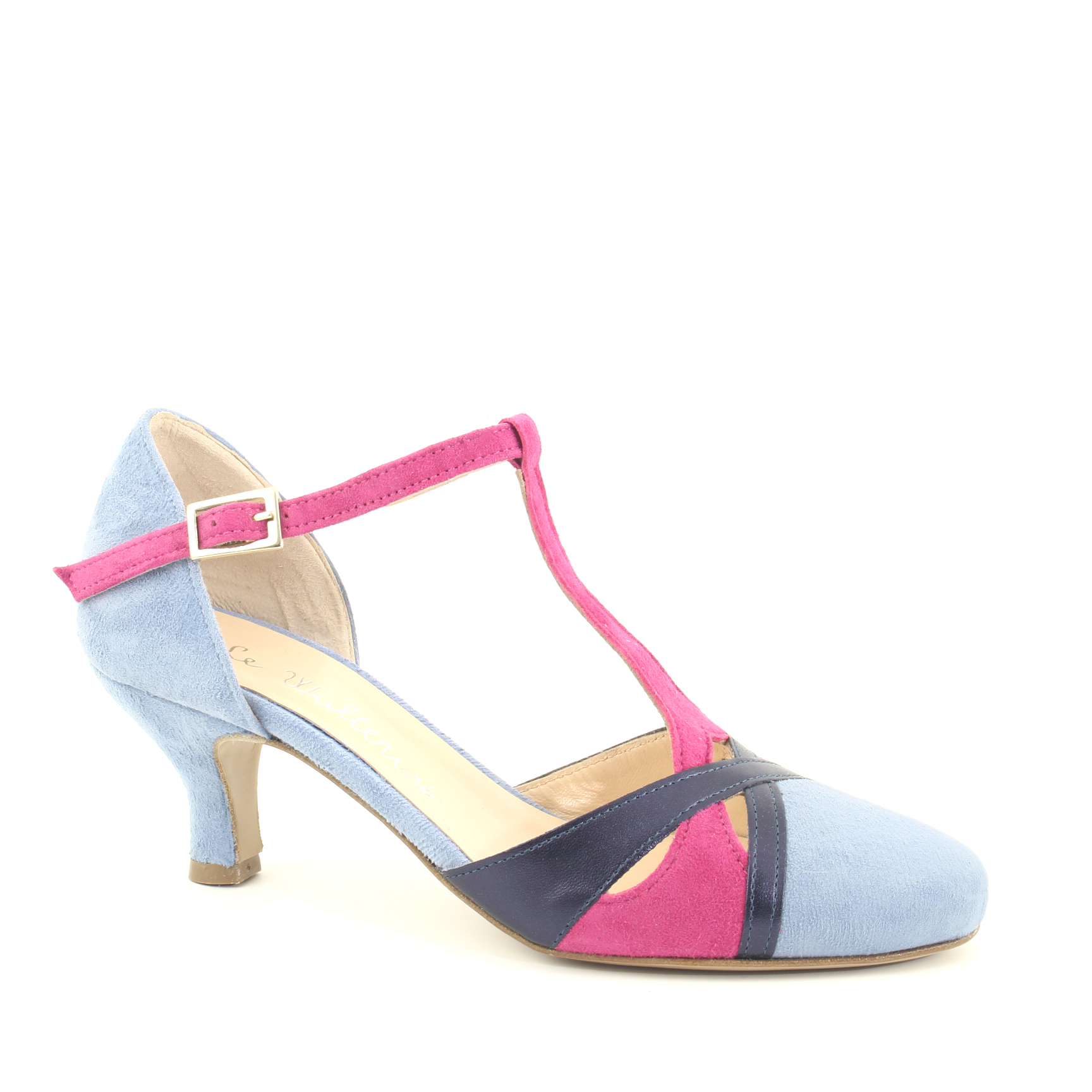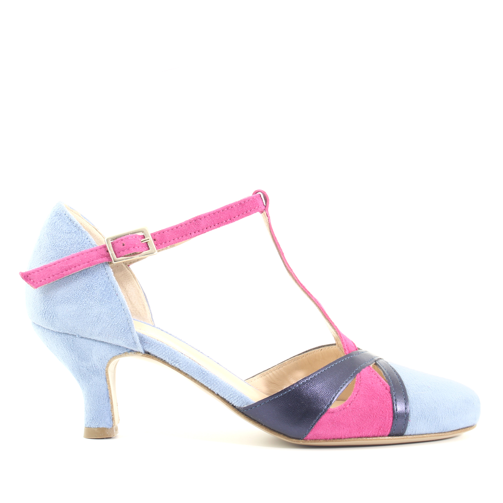 Questa decolleté con cinturino a T in camoscio è la scelta ideale per chi cerca una scarpa capace di distinguersi con classe e originalità, adatta sia per occasioni formali che per eventi più casual, dove il tocco di colore diventa un vero e proprio statement di moda.