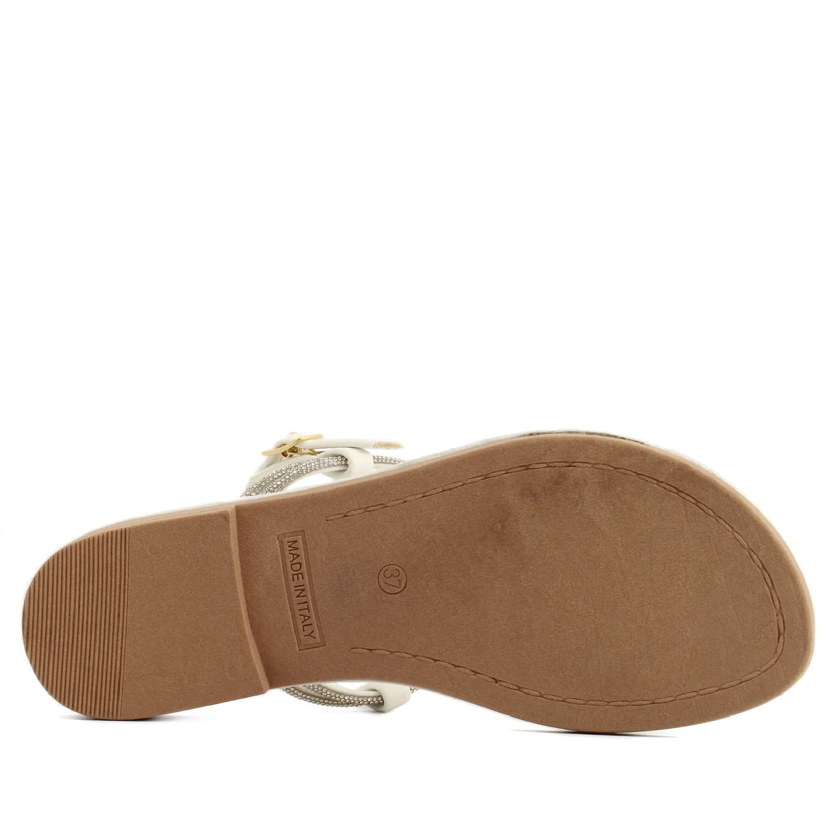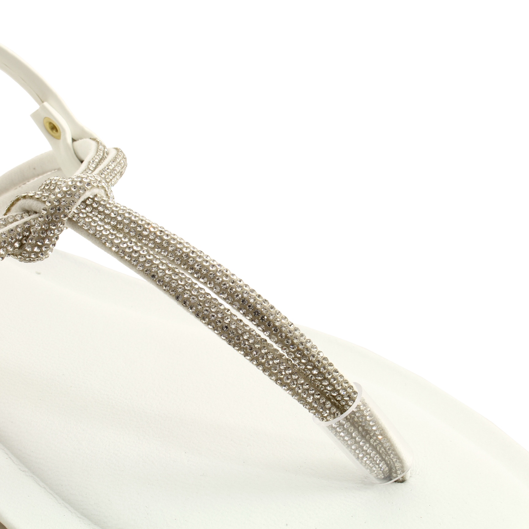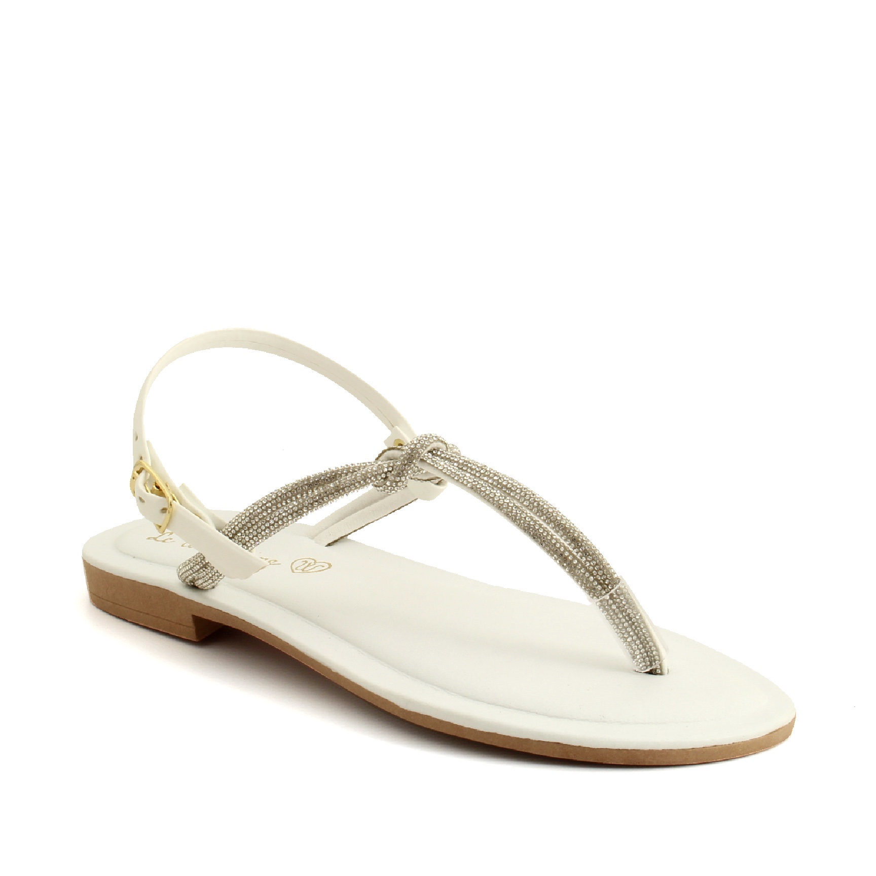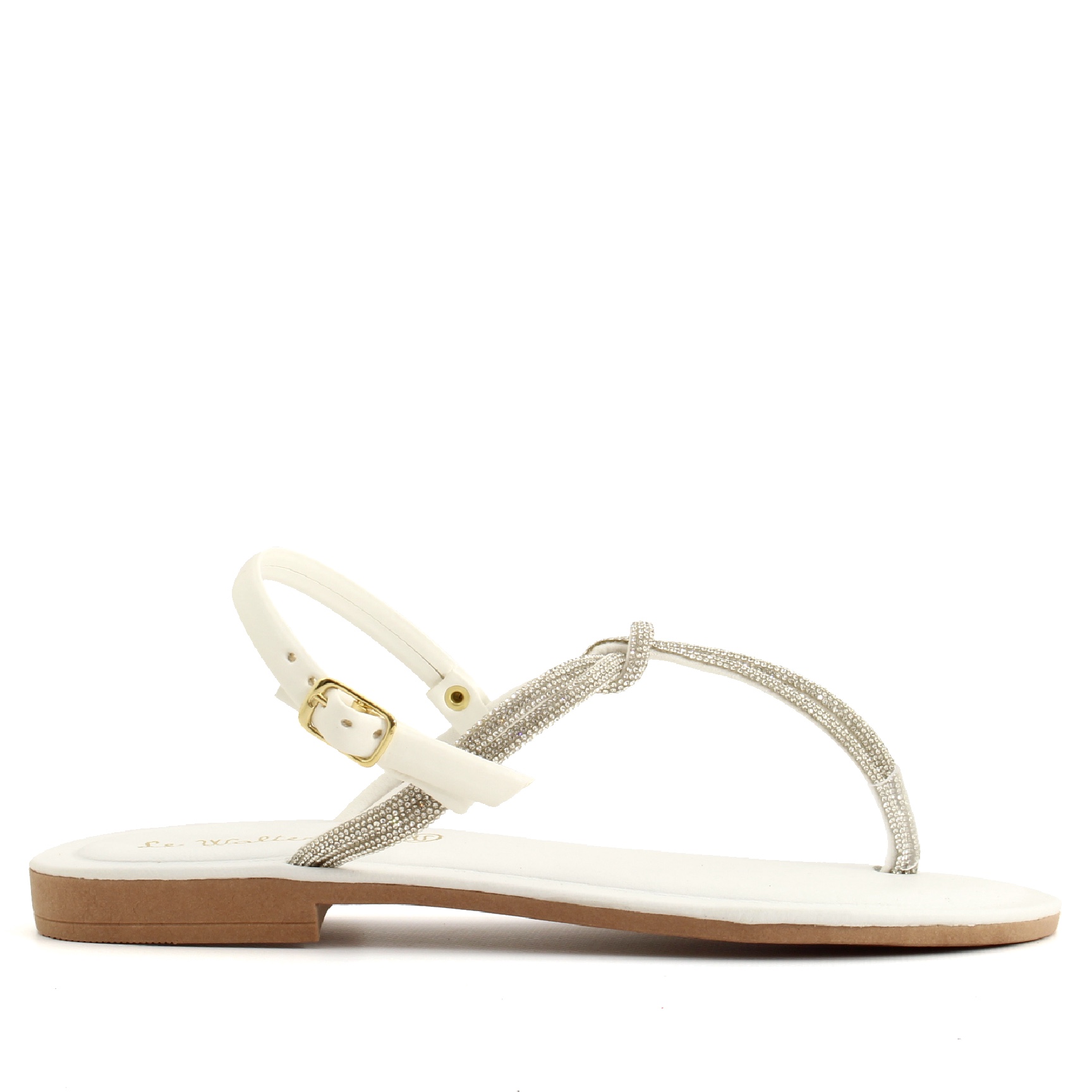 ✨ Geltrude – Sandalo Infradito in Pelle Bianco Ottico con Strass Argento ✨