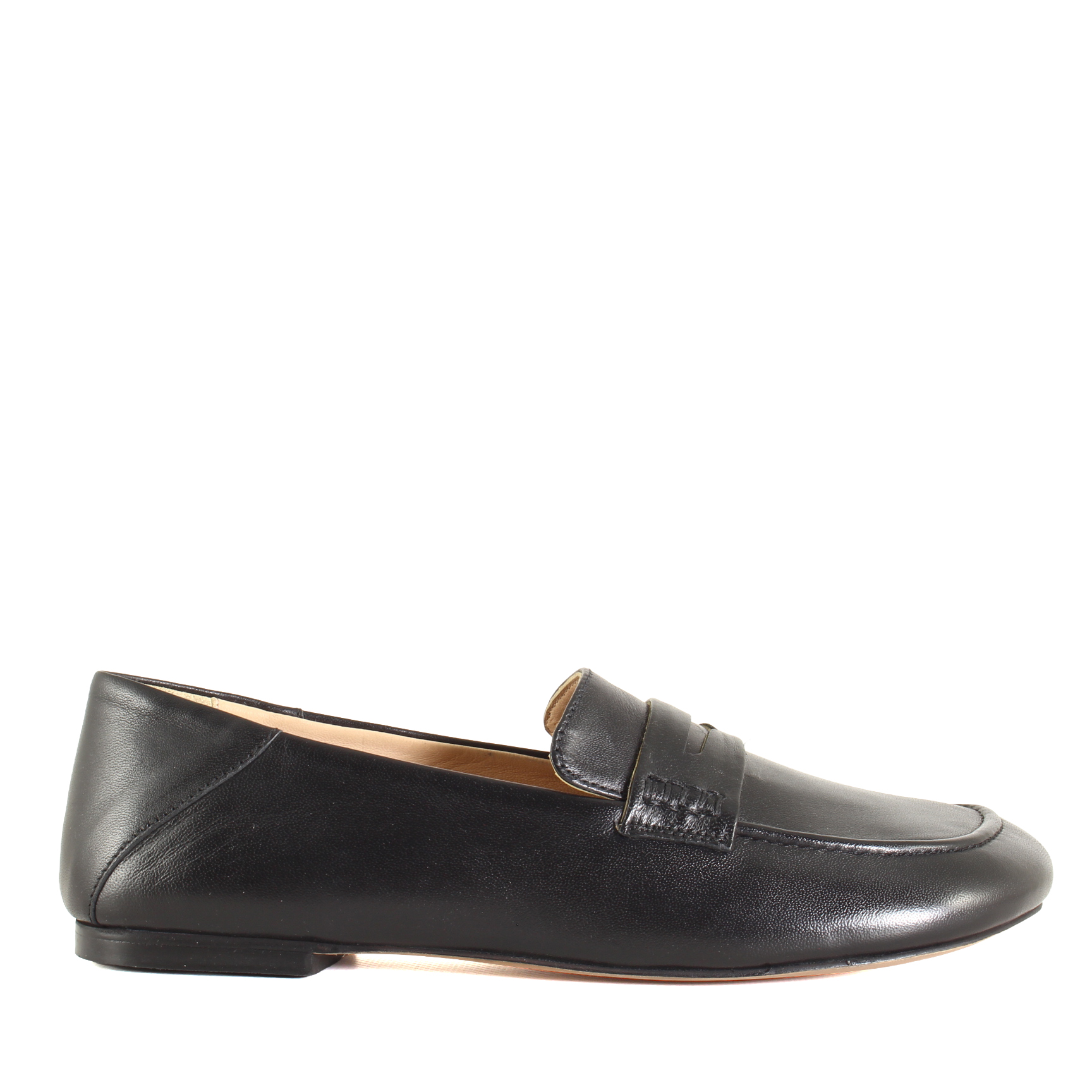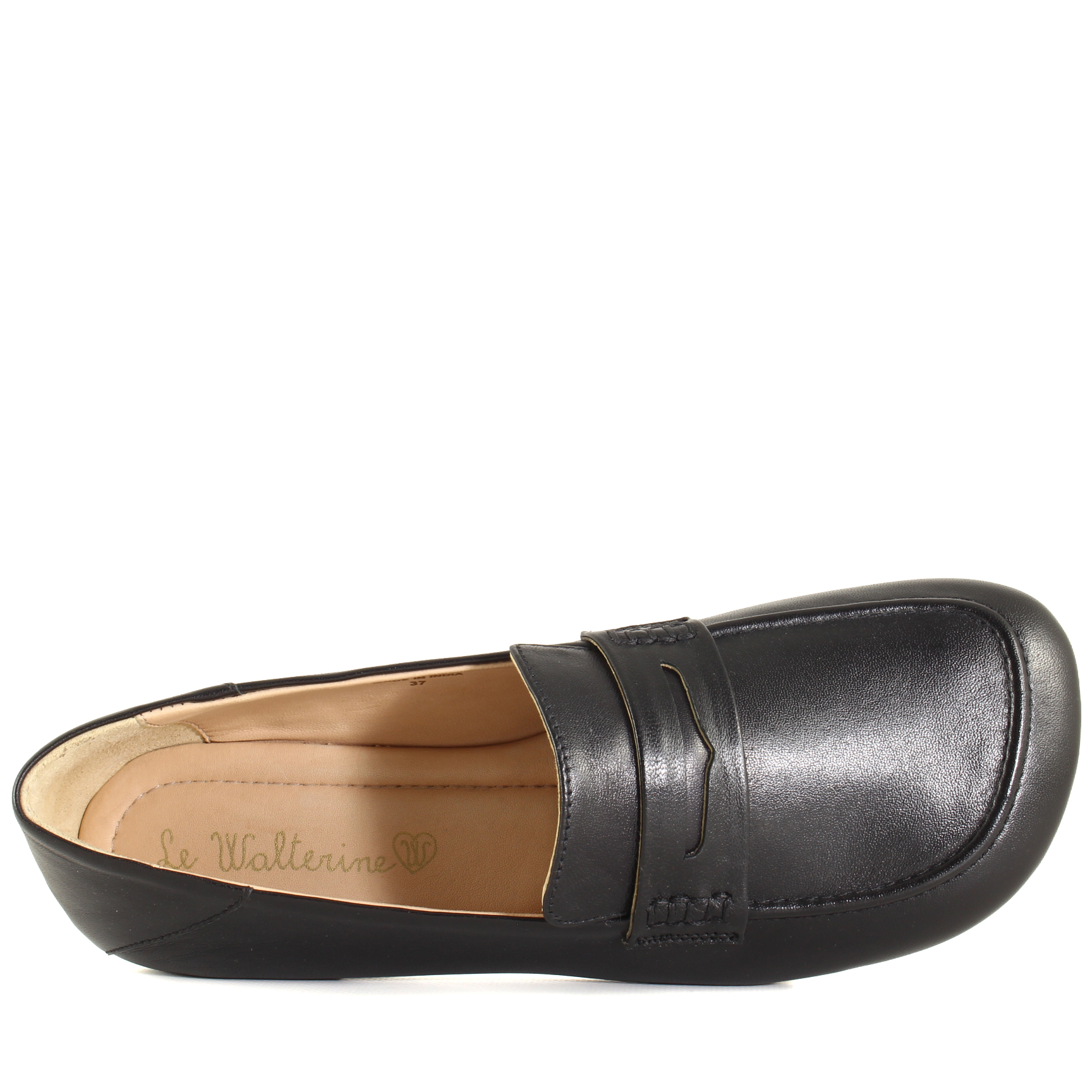 Realizzato in Italia da artigiani esperti, Fabiana Nero Pelle di Le Walterine interpreta il mocassino in una versione essenziale e decisa, dove la purezza del nero esalta le linee pulite e il design contemporaneo del modello.