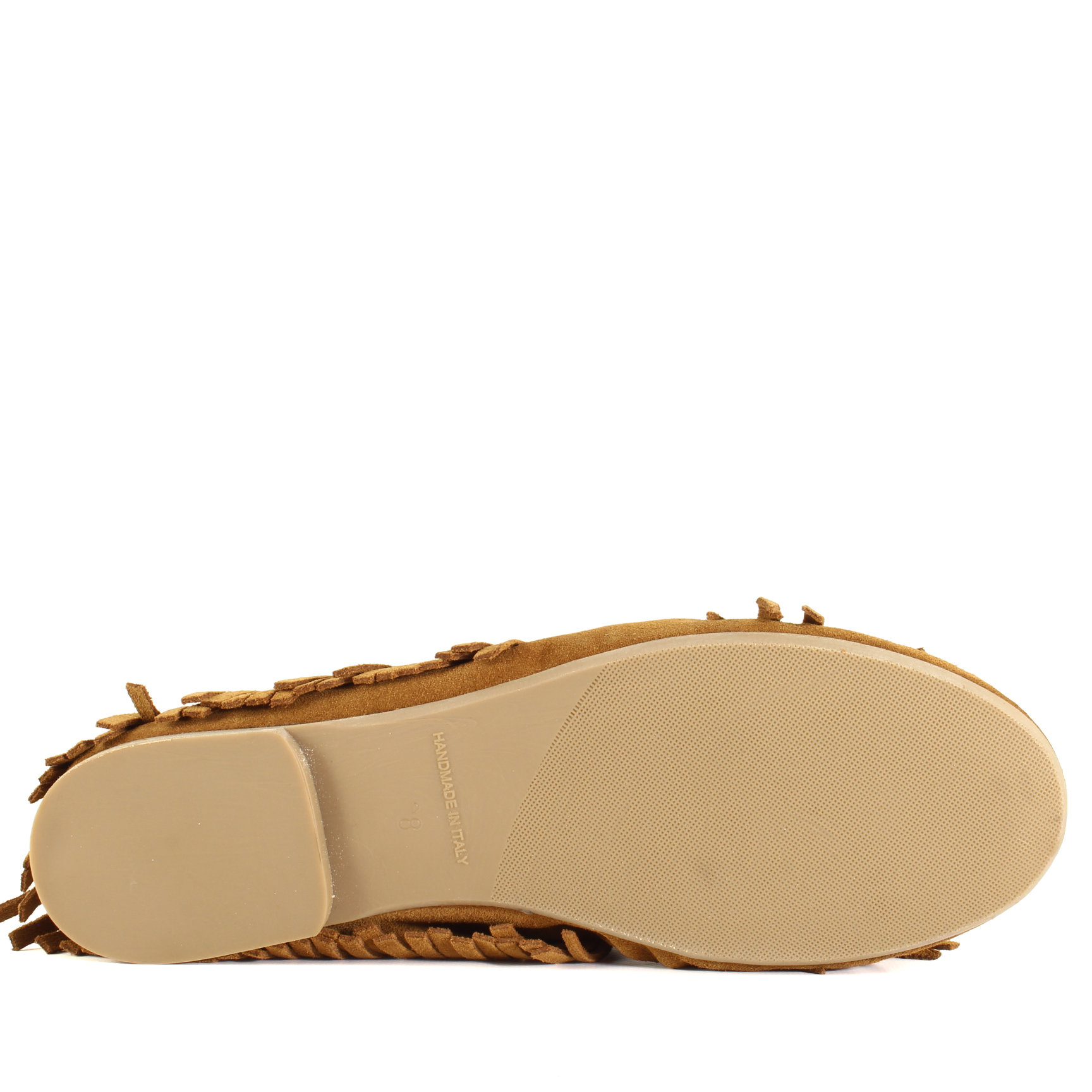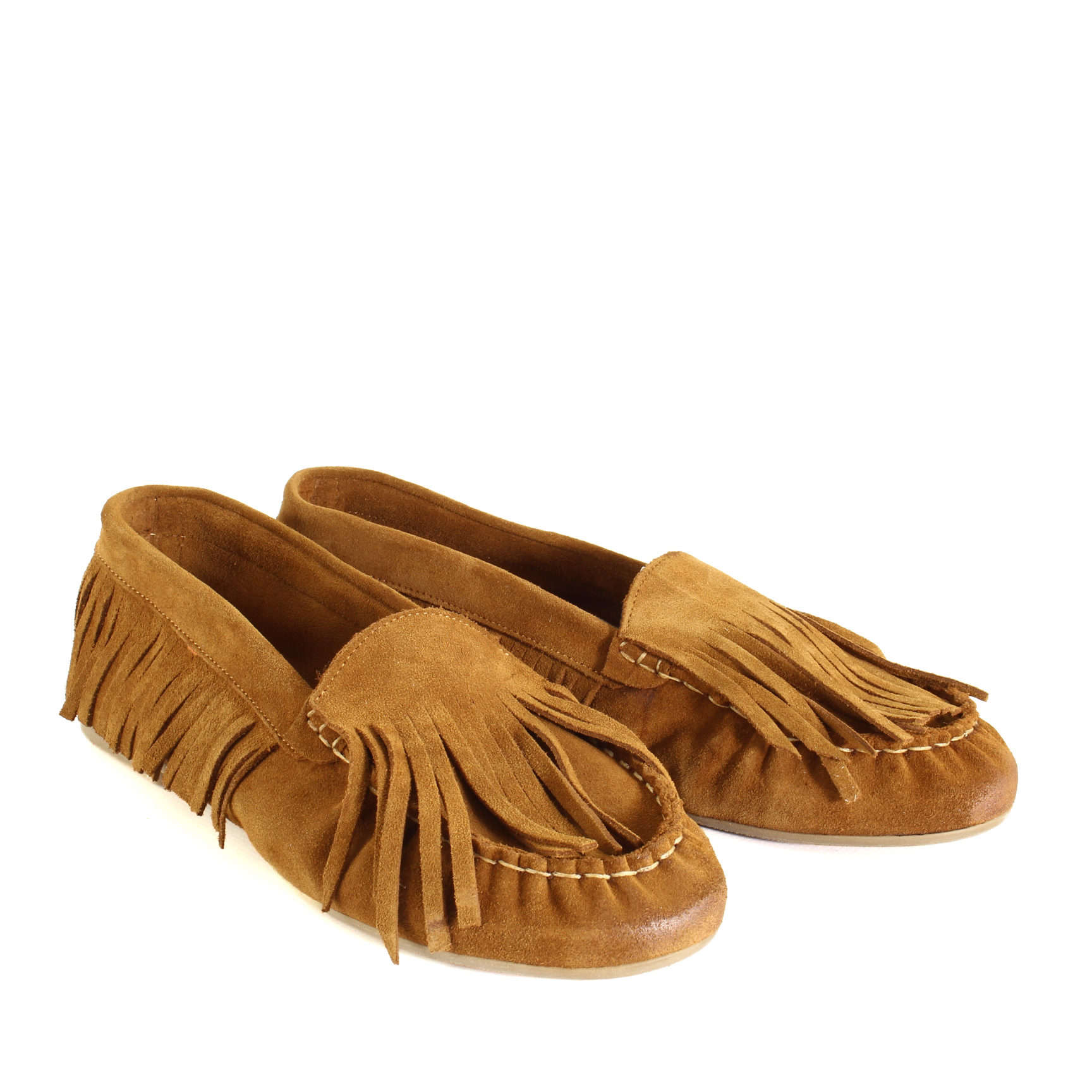 Una passeggiata in città o un pomeriggio tra caffè e librerie: ogni passo racconta personalità e stile senza tempo. Il mocassino Indianino “Kley” in pelle scamosciata colore cuoio è l’alleato perfetto per chi ama distinguersi con discrezione ed eleganza. Le frange lungo tutta la tomaia aggiungono un dettaglio sofisticato e dinamico, trasformando una calzatura classica in un pezzo di carattere. ✨