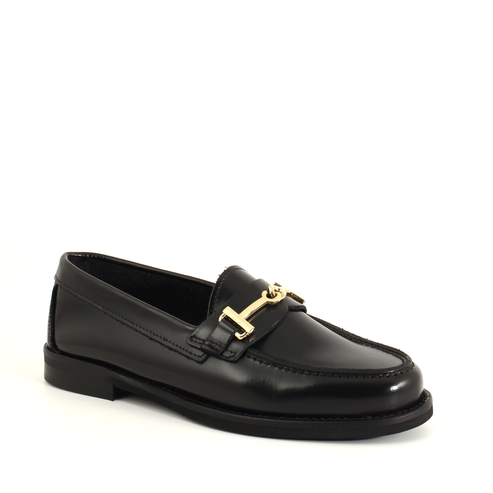 Il mocassino Letizia in pelle abrasivata nera con morsetto è un simbolo di raffinatezza moderna: la lucentezza della pelle e il dettaglio metallico ne fanno un alleato versatile e distintivo. Un modello artigianale che unisce comfort, solidità ed eleganza essenziale, pensato per accompagnarti con stile in ogni momento della giornata.