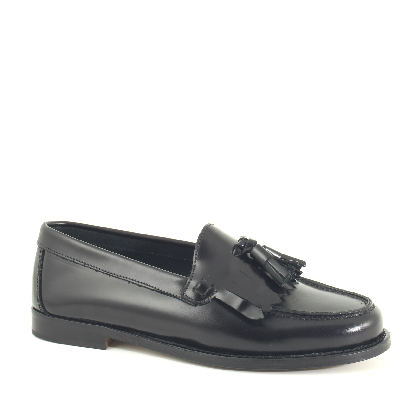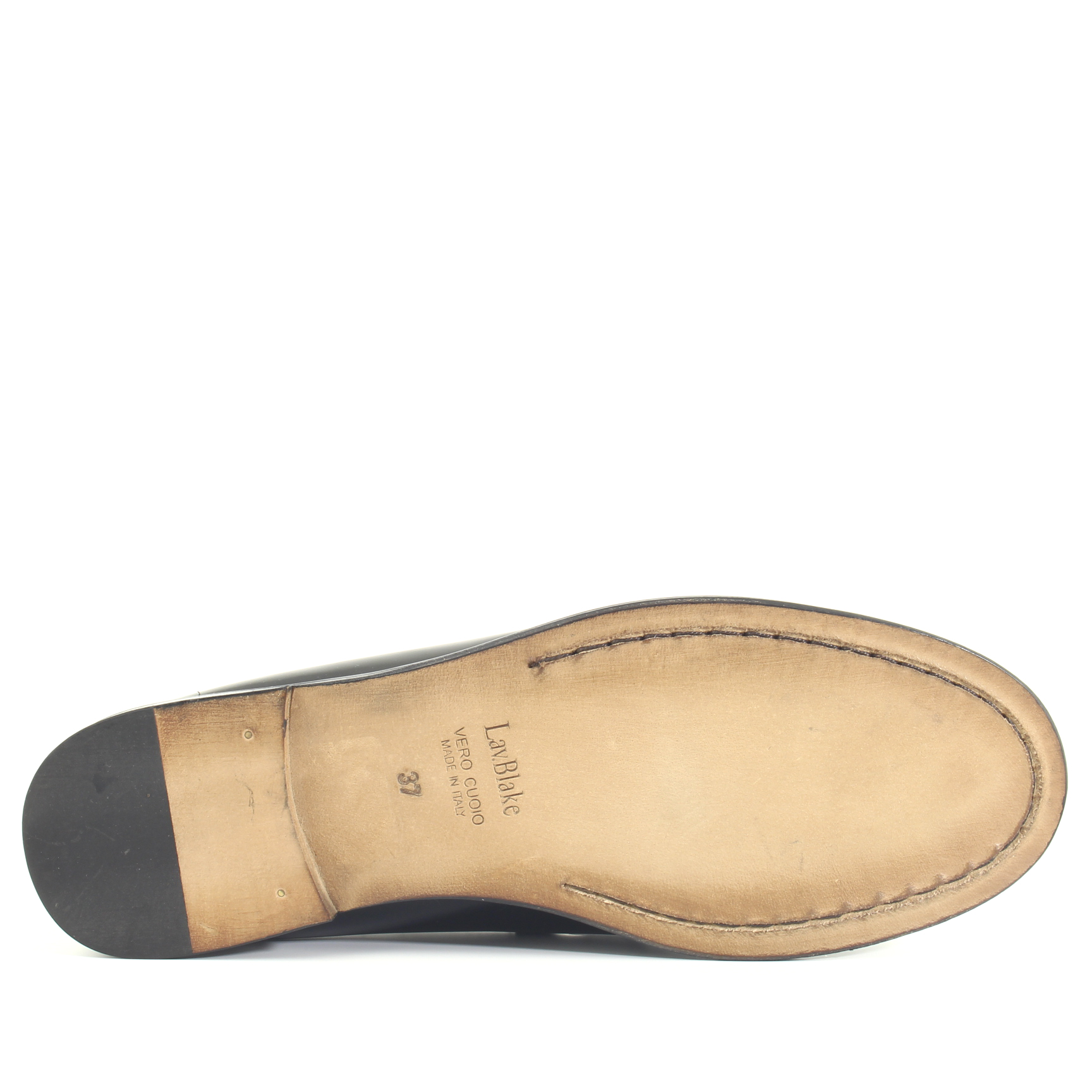 La lavorazione Black comporta l’utilizzo di un’unica cucitura (singola o doppia) che tiene insieme la suola, la tomaia, il sottopiede e la fodera.