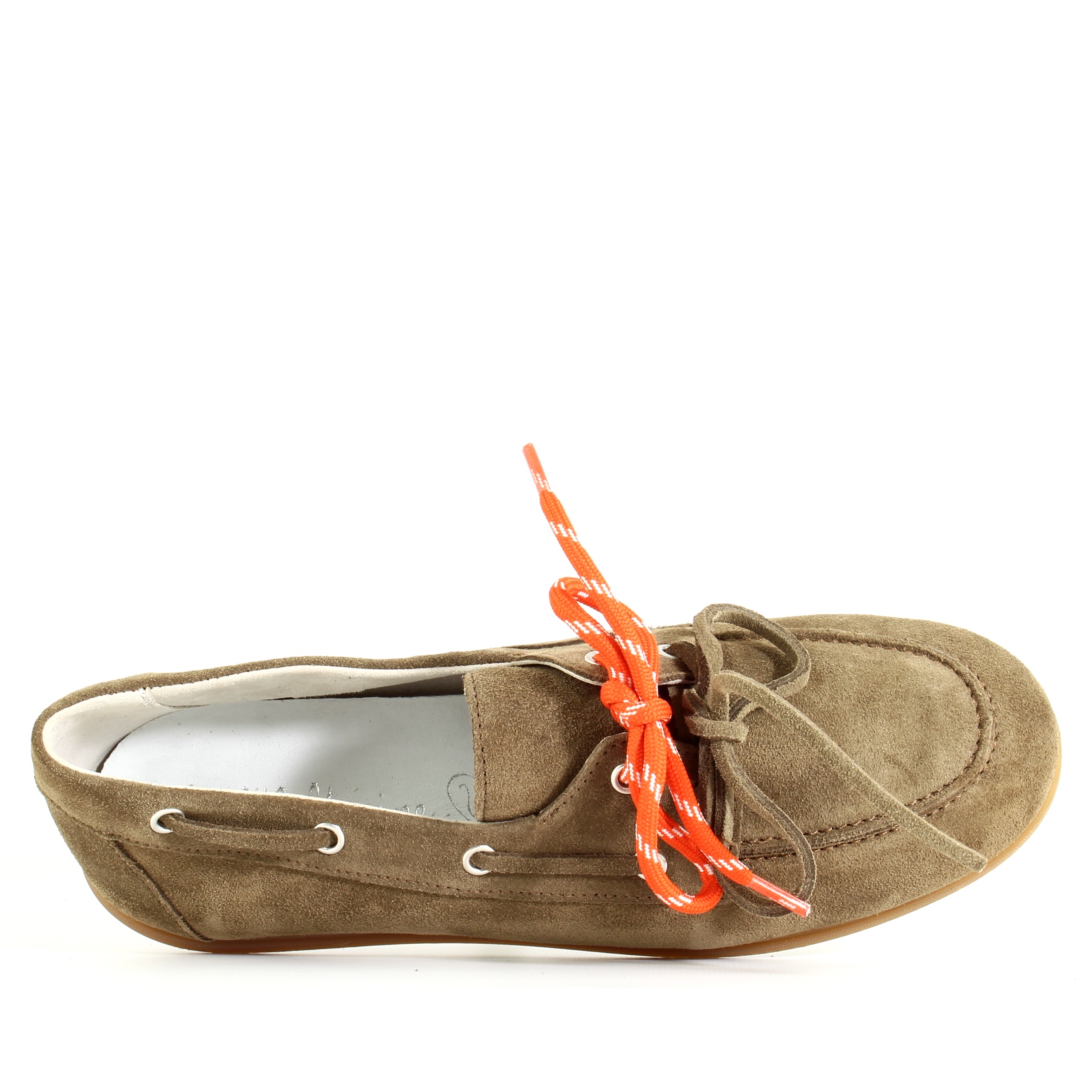 Mocassino Raphael in camoscio beige con laccio arancione: il neutro che non passa inosservato! 👞🧡