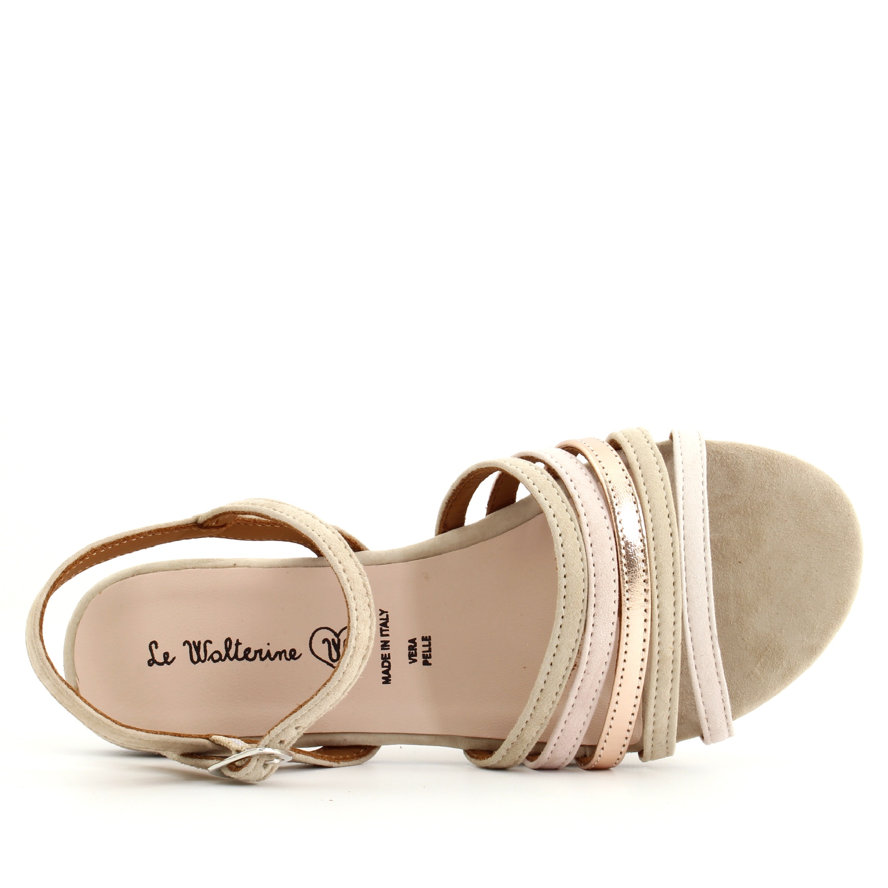 🧡 Sandalo Belinda – Camoscio e Pelle Laminata (Rame, Cipria e Beige)