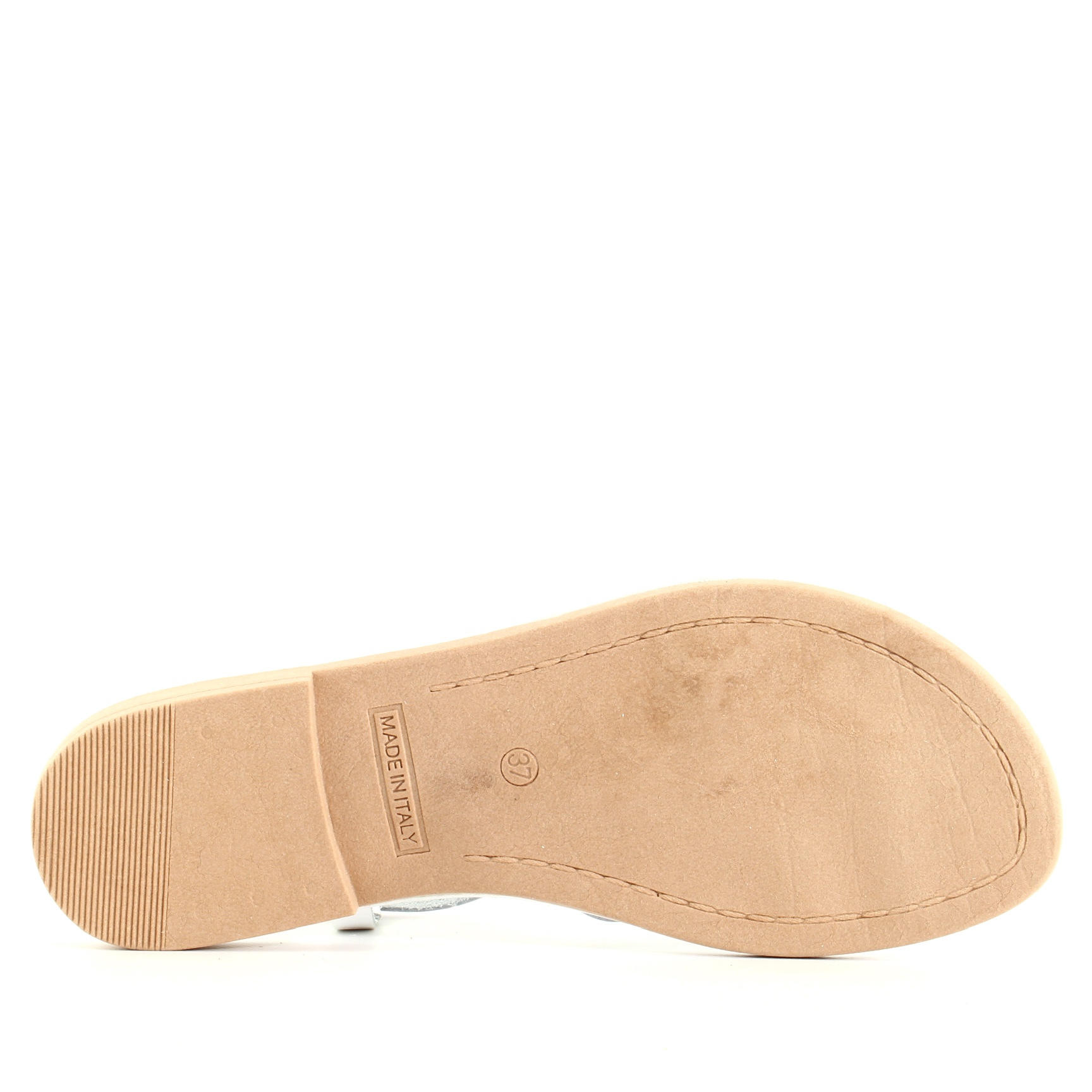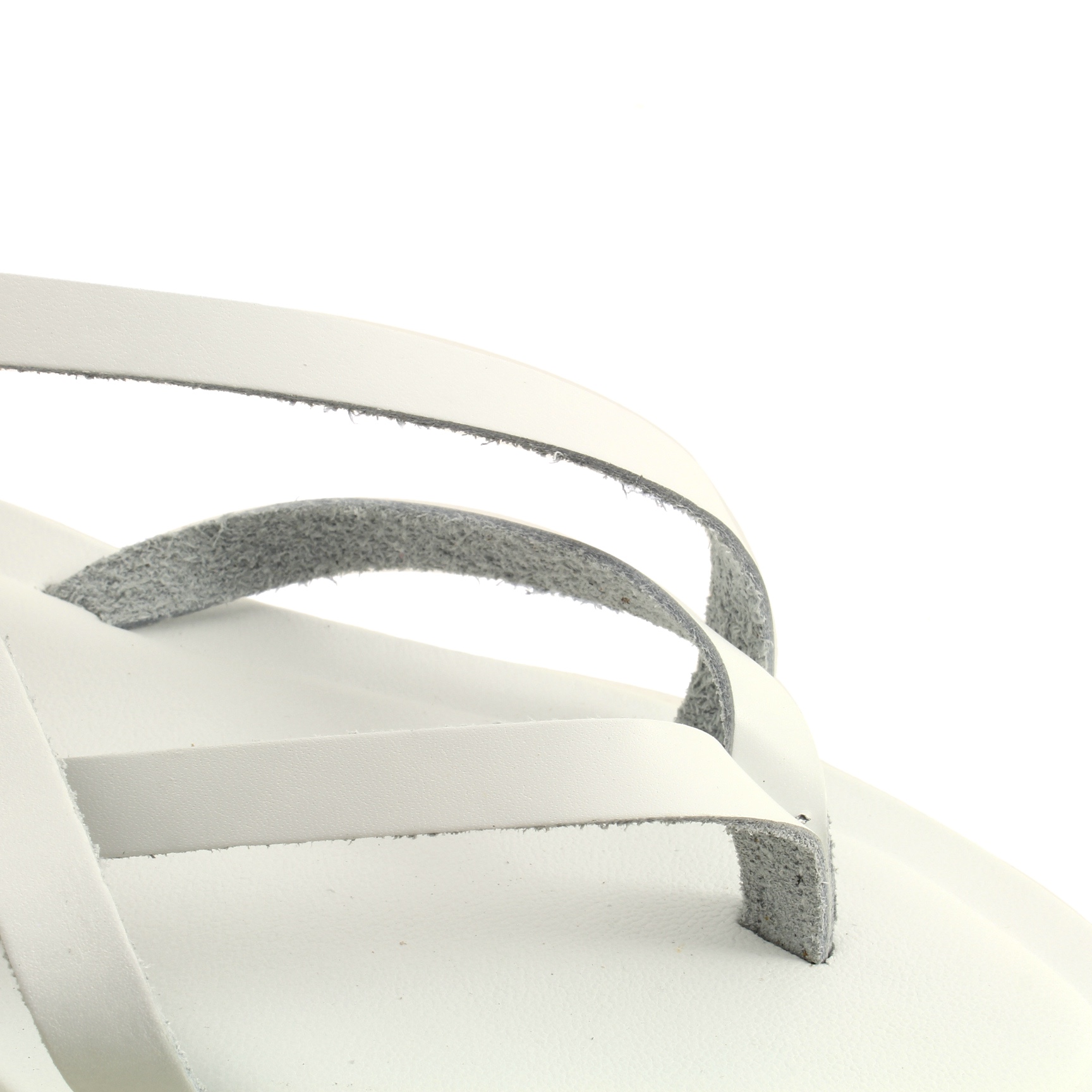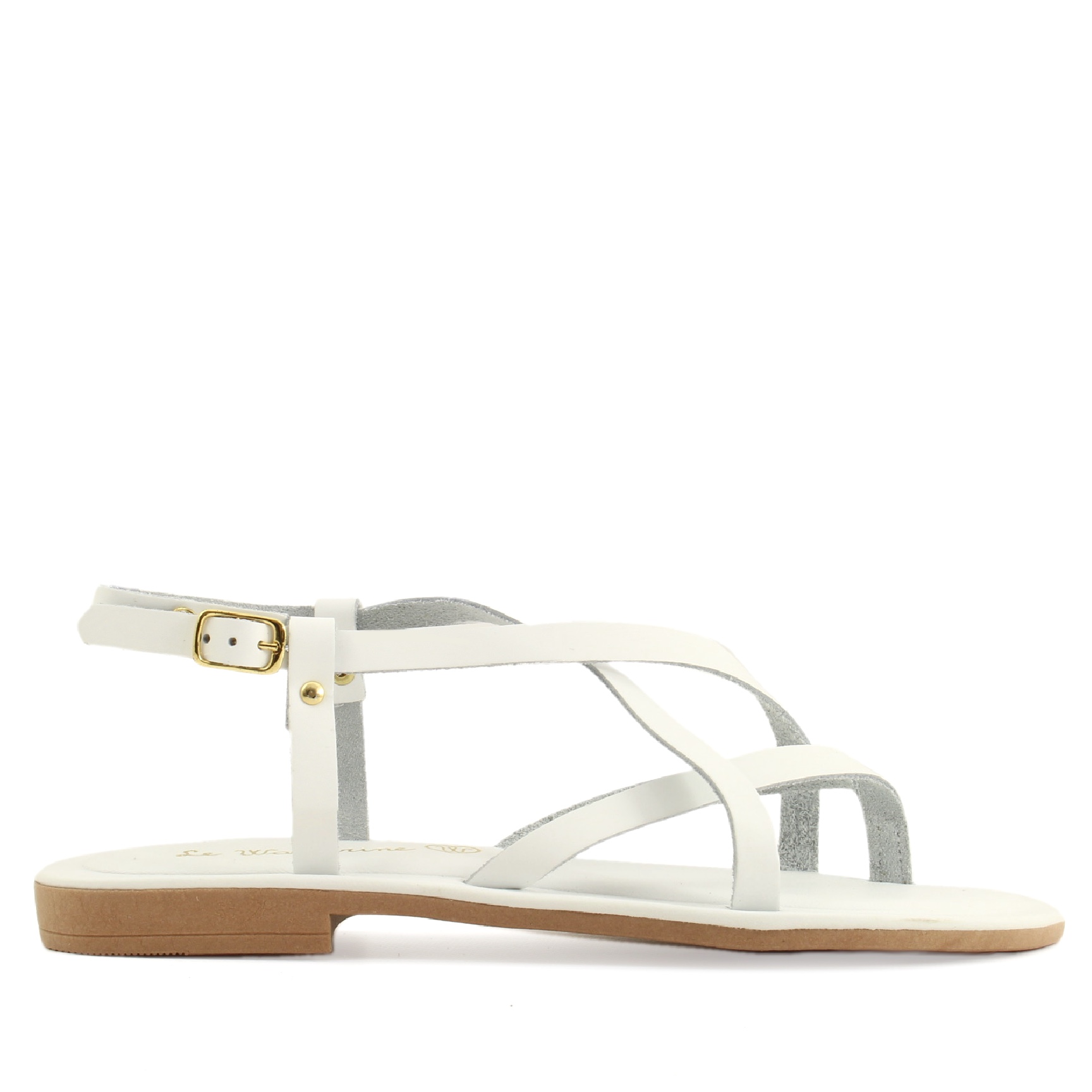 Le finiture in pelle bianca e le fascette sottili che si incrociano con grazia sul piede donano leggerezza e freschezza al look, mentre la suola flat in gomma e il cinturino alla caviglia garantiscono stabilità e comfort per tutto il giorno. Il bianco, luminoso e versatile, esalta l’abbronzatura ed è perfetto per la stagione calda.