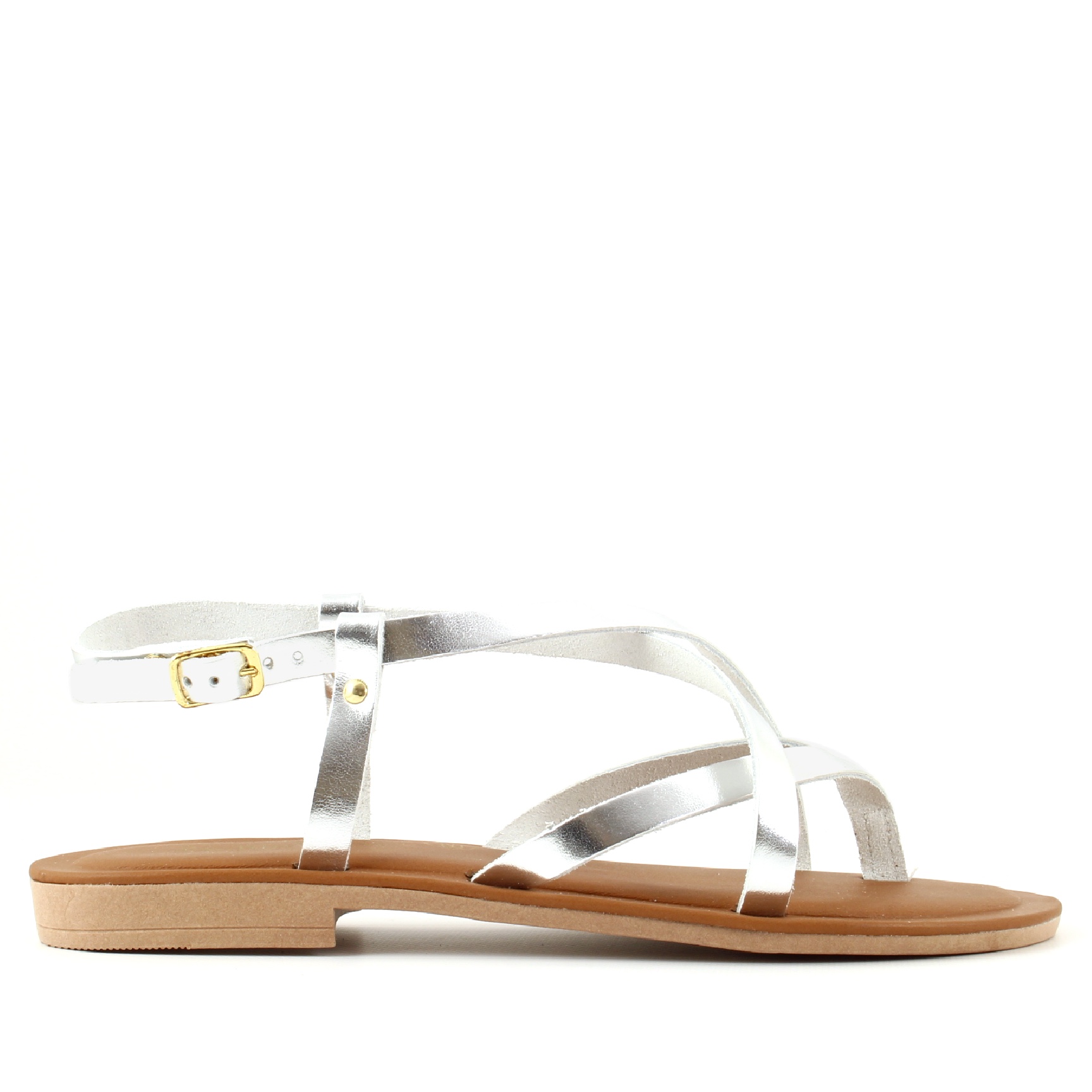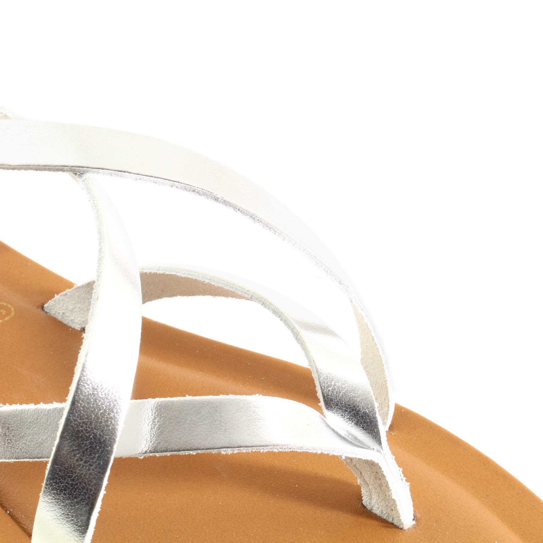 🌿 Carlotta – Sandalo Flat Infradito in Pelle Laminata Argento 🌿