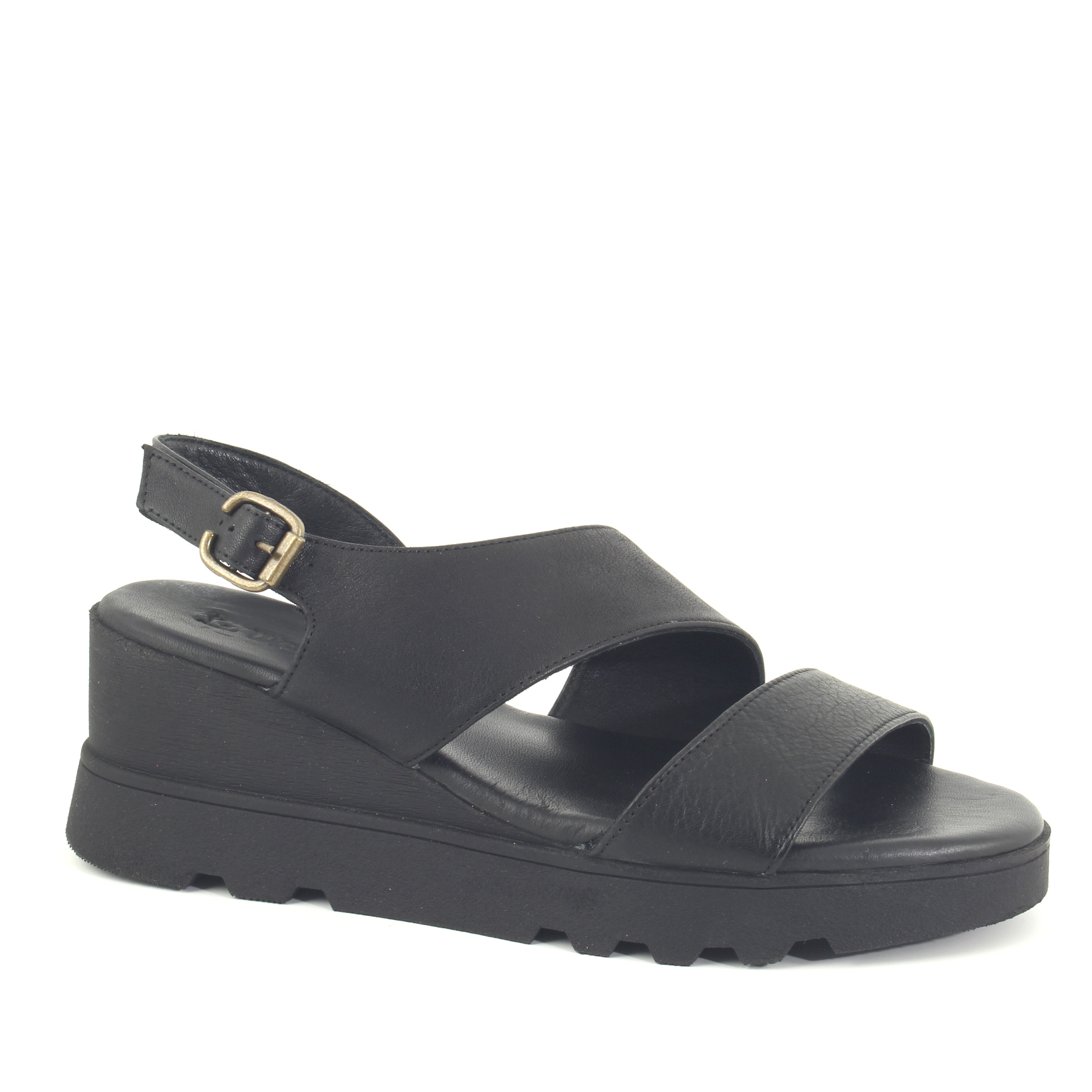 Sandalo con zeppa super comodo e chic, perfetto per le tue giornate estive. Questo modello è realizzato in morbida pelle che accarezza dolcemente il piede, garantendoti comfort tutto il giorno. Il sottopiede, anch'esso in pelle, è così morbido che ti sembrerà di camminare su una nuvola! La suola in gomma offre una grande aderenza, quindi puoi muoverti in totale sicurezza, senza scivolamenti. E poi, la zeppa di 5 cm aggiunge quel tocco di eleganza senza compromettere la comodità. Che ne dici, ti sembra il compagno perfetto per le tue avventure quotidiane?