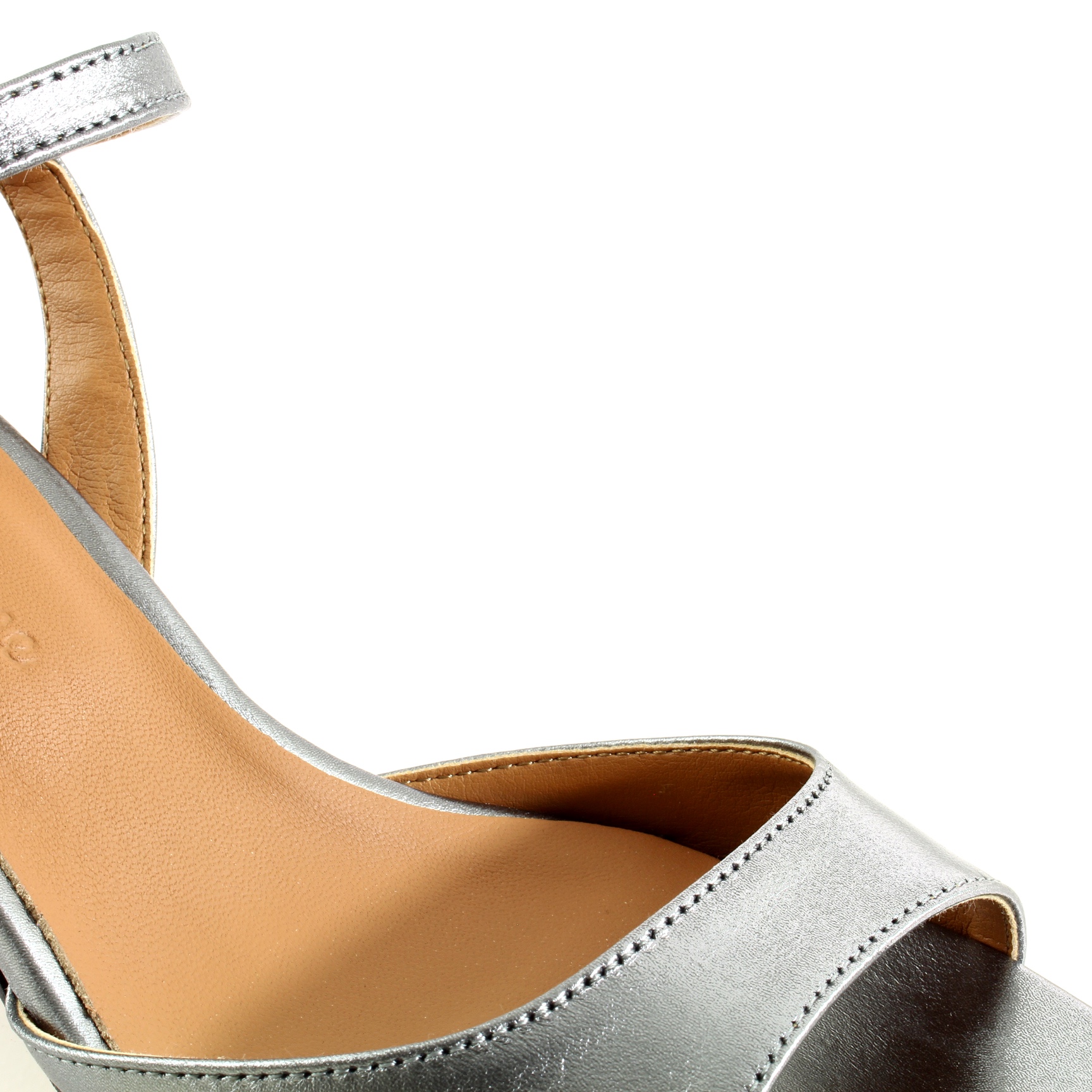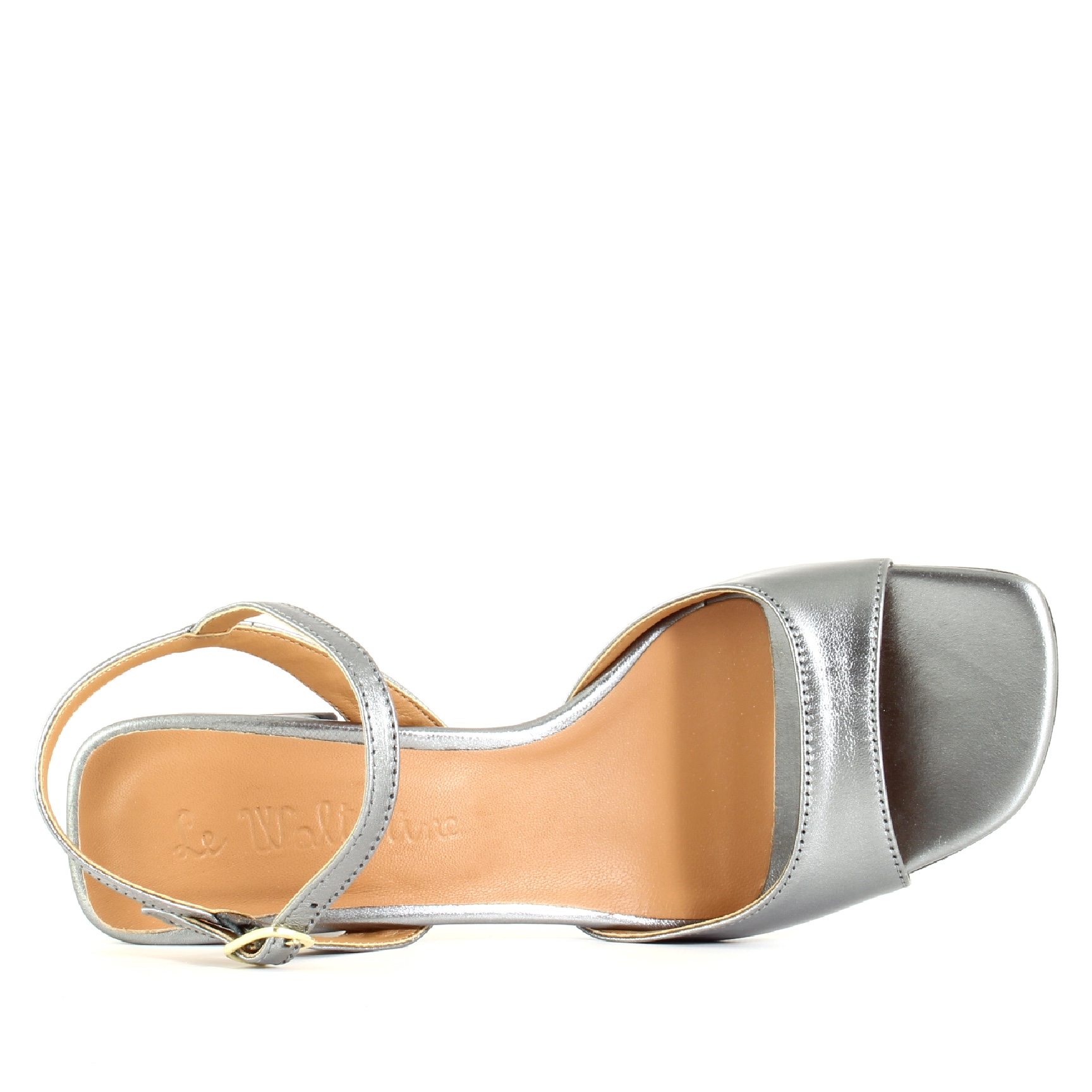 Un tocco di luce per ogni passo: il sandalo Cleide di Le Walterine in pelle laminata color argento è l'accessorio perfetto per brillare con discrezione, ogni giorno. Il tacco largo da 5 cm garantisce comfort e slancio, rendendolo ideale per affrontare con stile anche le giornate più dinamiche.