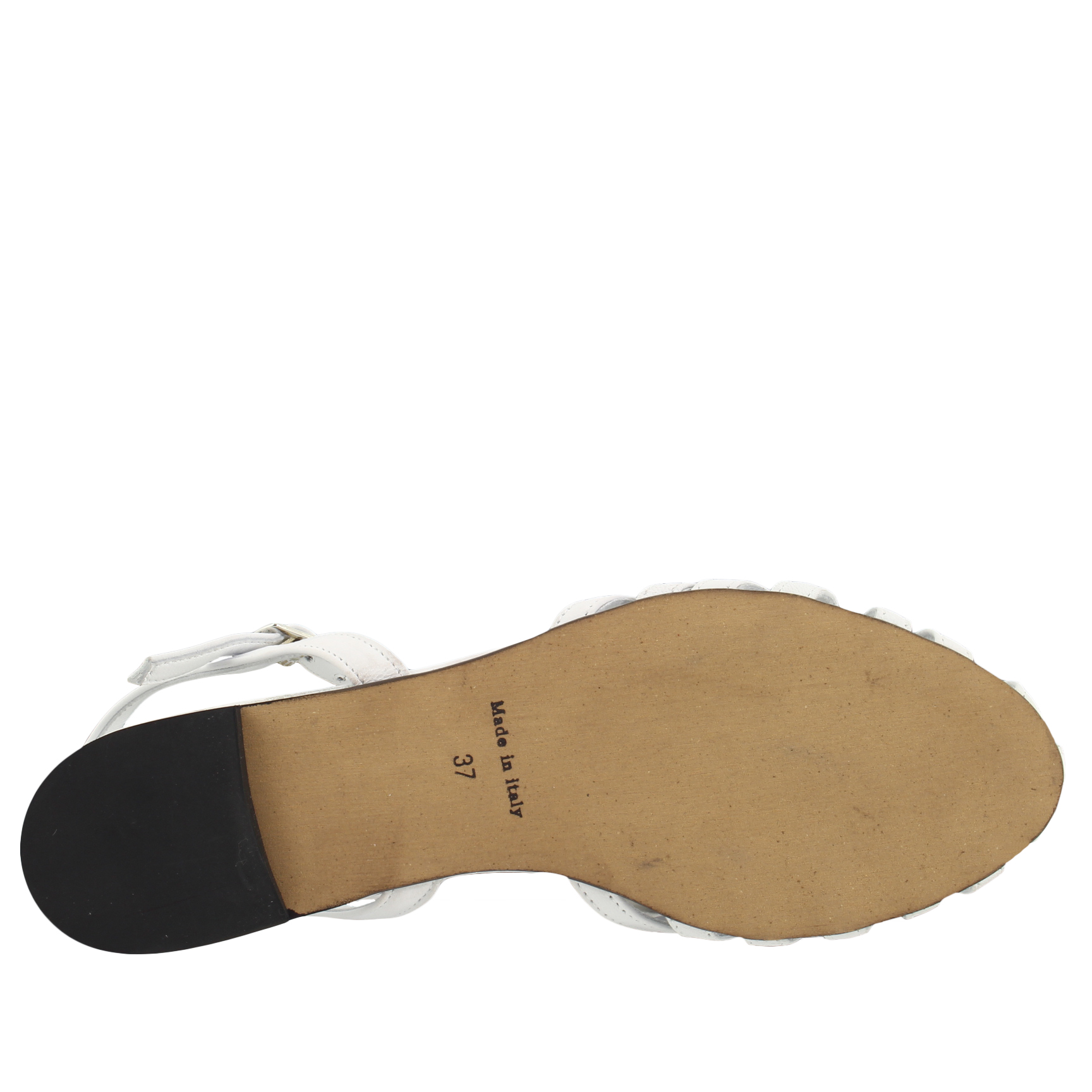 Sandali in pelle con tomaia a gabbietta, suola in gomma e sottopiede imbottito. Questi sandali estivi da donna calzano il piede alla perfezione e lo abbracciano comodamente.
