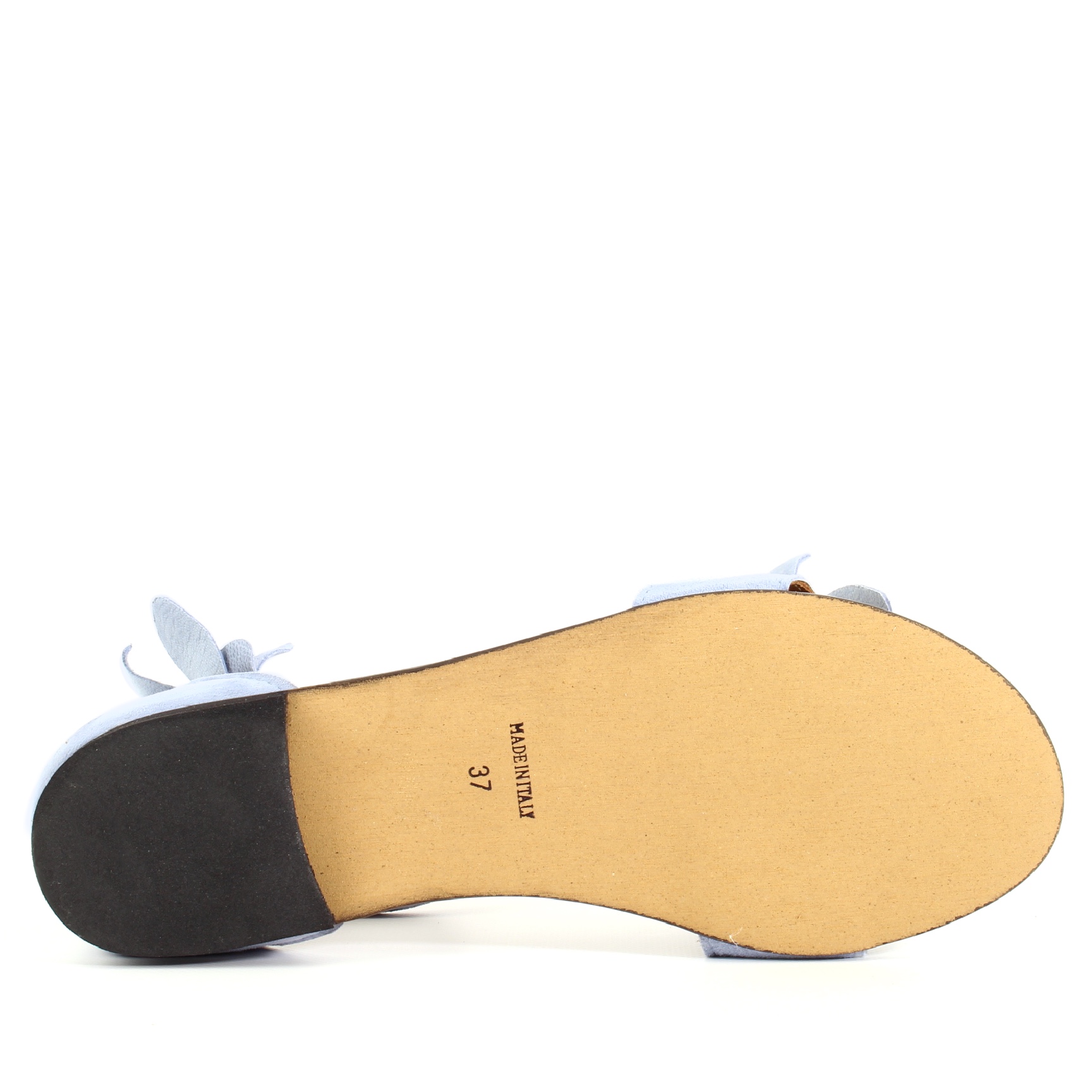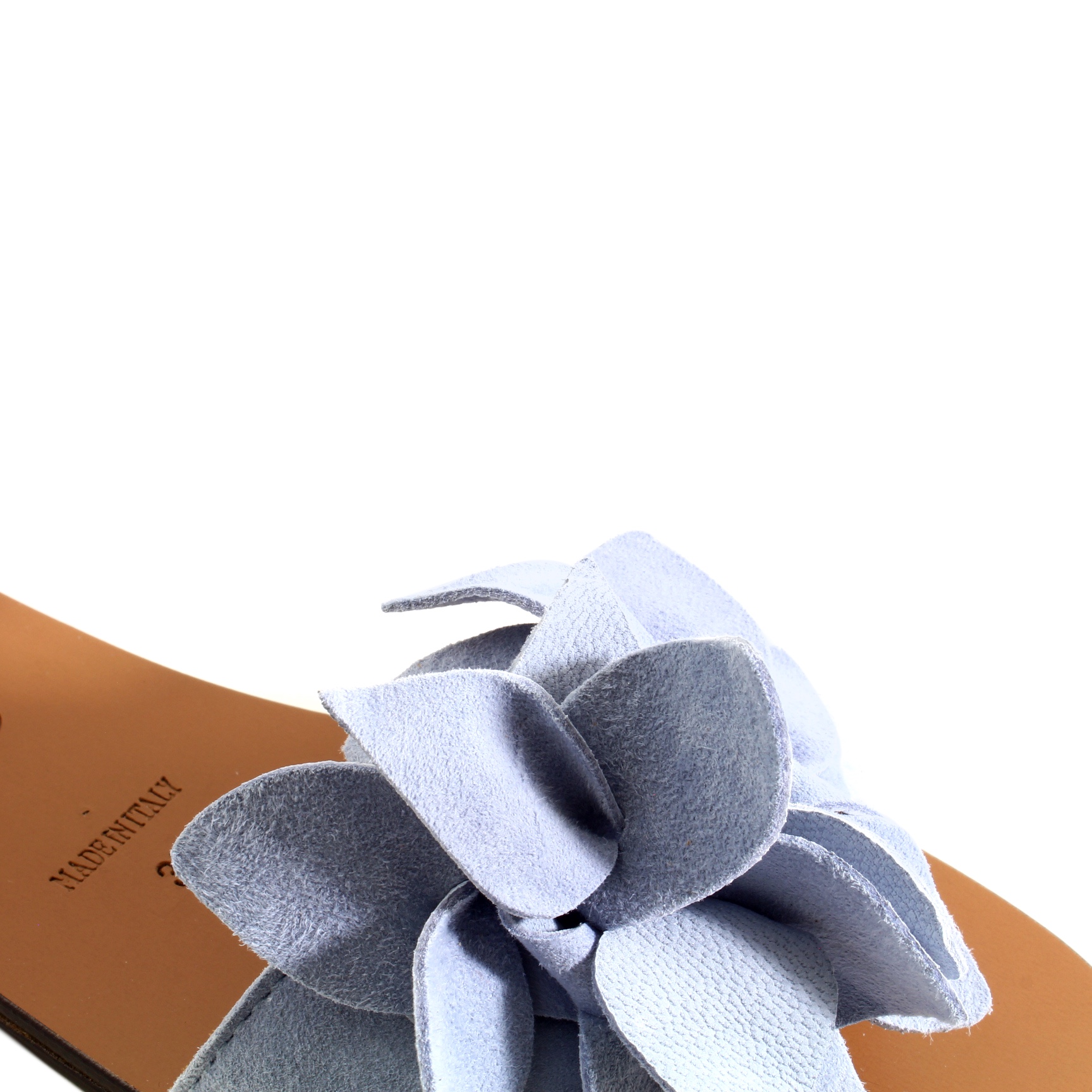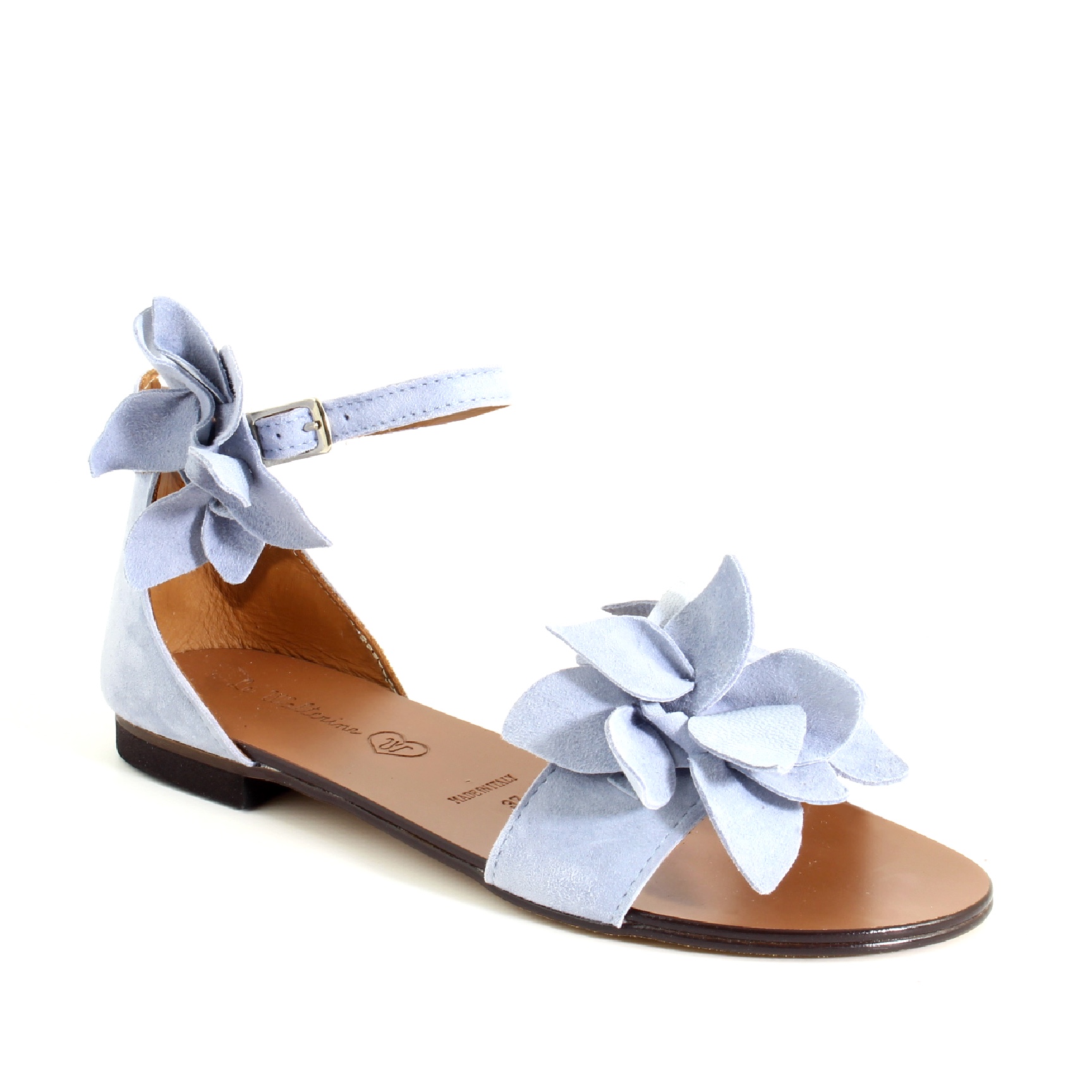 Il sandalo flat Francy di Le Walterine è l’emblema della femminilità romantica con un tocco artigianale tutto italiano. Realizzato in morbido camoscio color avio, questo modello incanta al primo sguardo grazie ai fiori tridimensionali applicati sul davanti e sul cinturino alla caviglia: un dettaglio delicato e d’effetto che trasforma ogni passo in una dichiarazione di stile.