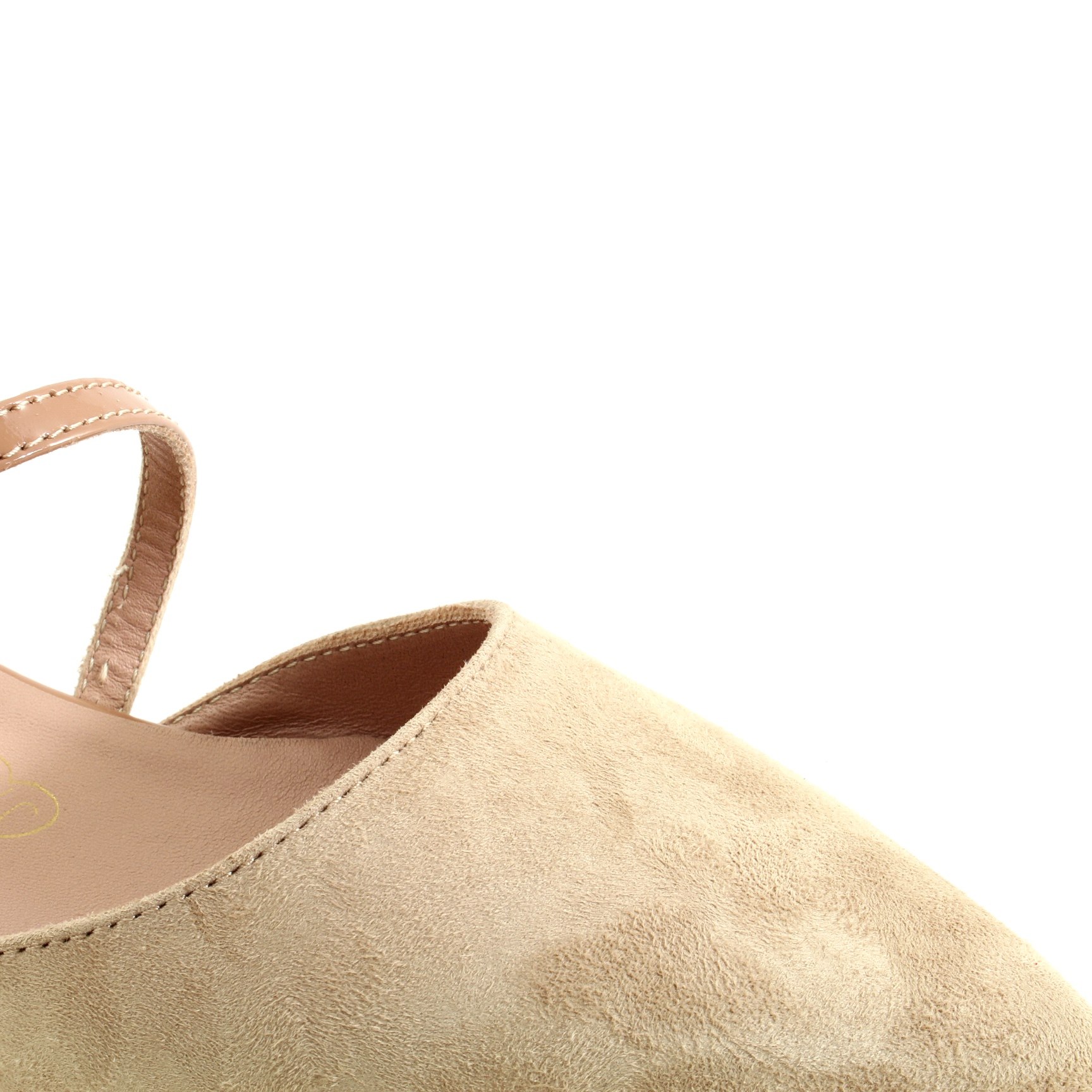 Sofisticata e discreta, la slingback Betty in camoscio nude è il jolly del tuo guardaroba estivo. Morbida, leggera e facile da abbinare, è pensata per valorizzare ogni outfit con un’eleganza naturale.