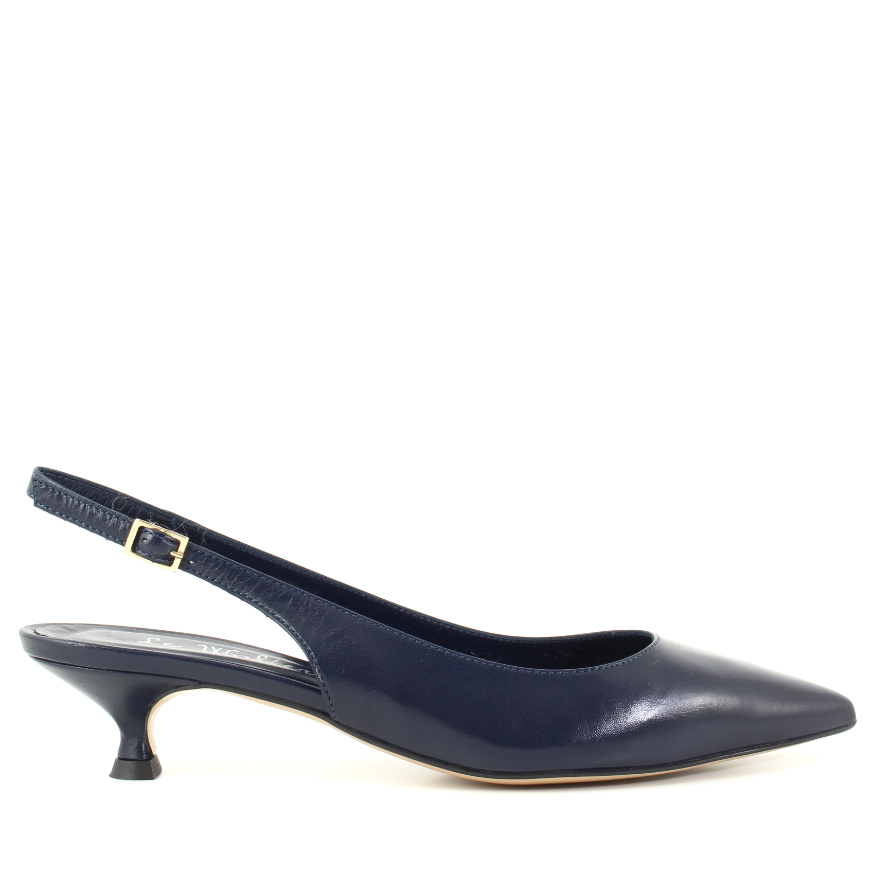 Slingback Lulù, Le Walterine. Slingback tacco basso 3 cm. Il modello Lulù è un basico da avere assolutamente nella scarpiera. Tomaia in pelle di capretto, fodera in pelle e suola in tunith, è l'accessorio passe-partout che completerà i tuoi outfit. Questa slingback donna ha un tacco coda: la suola è un tuttuno con il tacco. Se non ami avere i piedi troppo scoperti e desideri una valida alternativa ai sandali, questa è la slingback giusta per te!