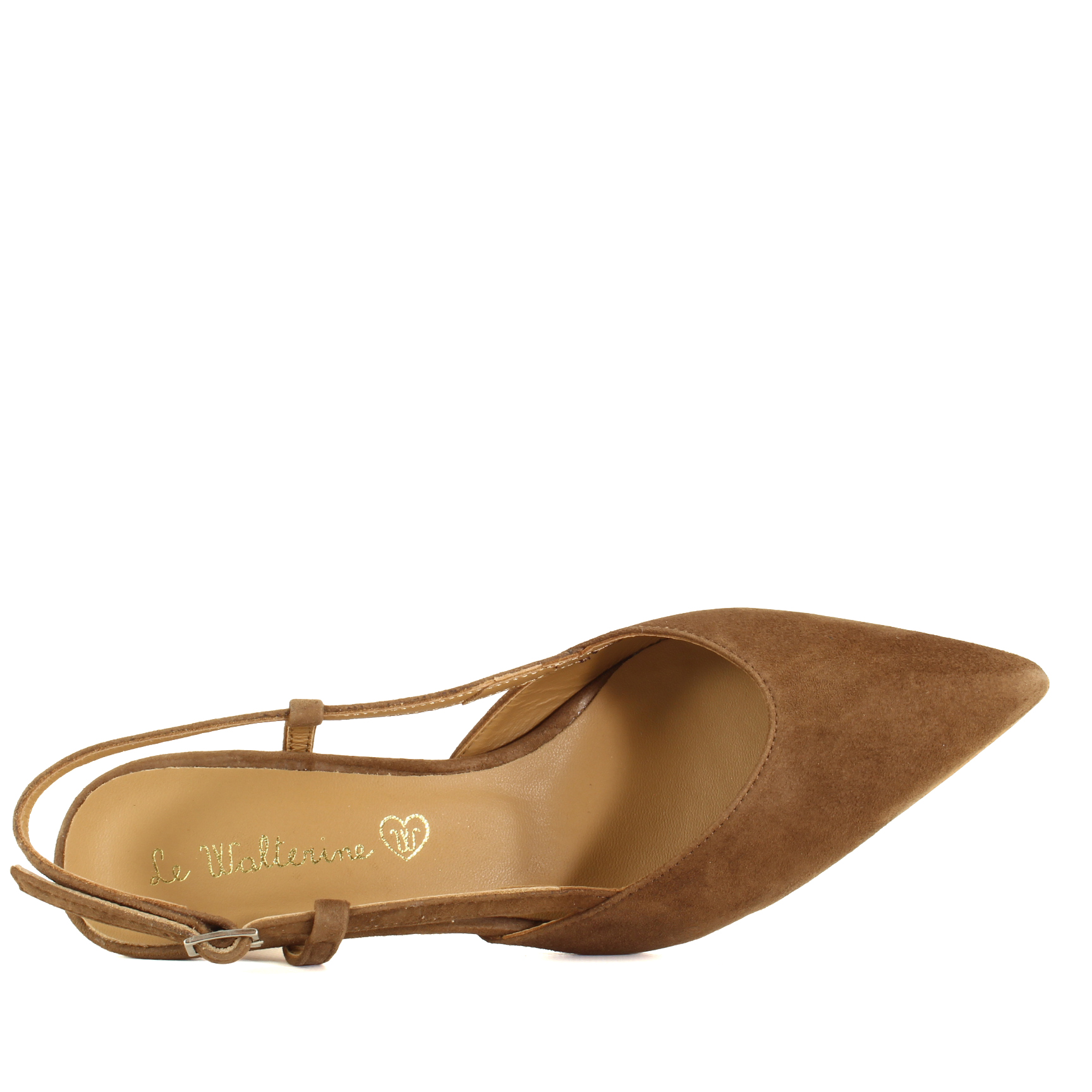La slingback Maryl di Le Walterine è realizzata in pelle scamosciata color cuoio e nasce da una lavorazione artigianale Made in Italy, dove qualità dei materiali e attenzione ai dettagli si fondono in un prodotto autentico.