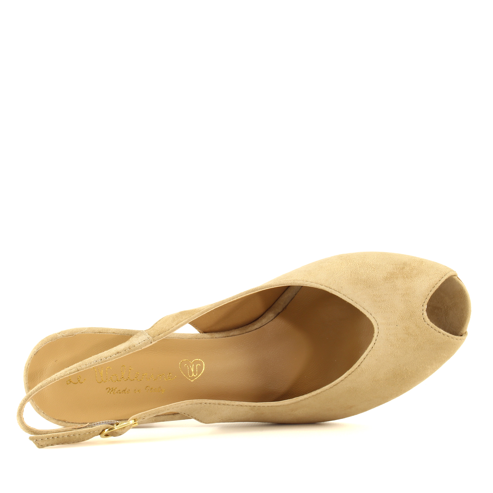 C’è un momento in cui il gesto di indossare una scarpa diventa un invito a rallentare e respirare la luce del giorno. La slingback Ornella in pelle scamosciata beige avvolge il piede con delicatezza, e il suo colore richiama la sabbia tiepida al sole, le facciate chiare che si accendono al mattino, l’eleganza naturale delle cose semplici. Ogni passo sembra più leggero, come se la città si muovesse al tuo stesso ritmo.