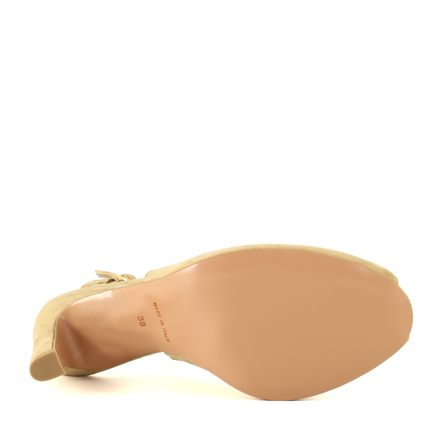 Il taglio open-toe accarezza la silhouette con femminilità discreta, lasciando intravedere la naturalezza del gesto. Il tacco 8 cm slancia la figura con equilibrio, regalando una postura elegante ma spontanea. La scamosciatura beige cattura la luce con morbidezza, creando sfumature calde e raffinate che si fondono armoniosamente con ogni outfit.