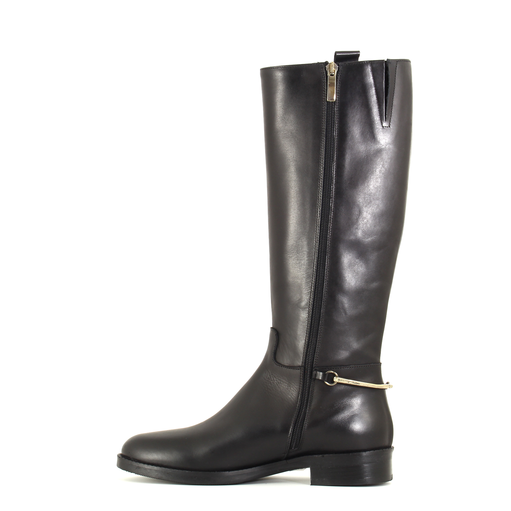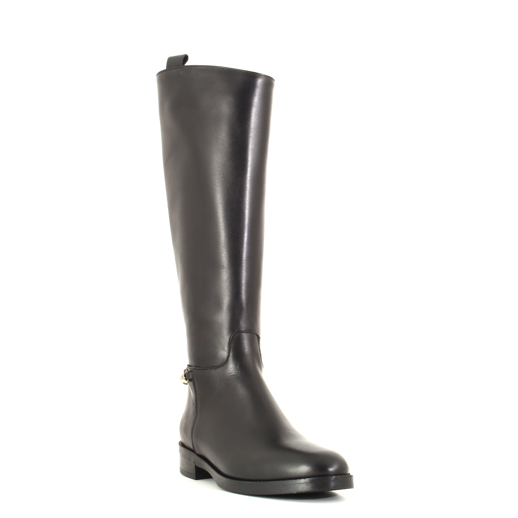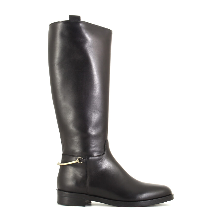 Lo stivale Albert è la quintessenza dello stile equestre rivisitato con eleganza contemporanea. Realizzato artigianalmente in pelle nera liscia, si distingue per la sua silhouette lineare e raffinata, che accompagna la gamba con naturalezza. La zip laterale (solo da un lato) rende la calzata pratica senza interrompere la pulizia del design, mentre il piccolo accessorio metallico all’altezza del tallone aggiunge un dettaglio ricercato, discreto ma distintivo.