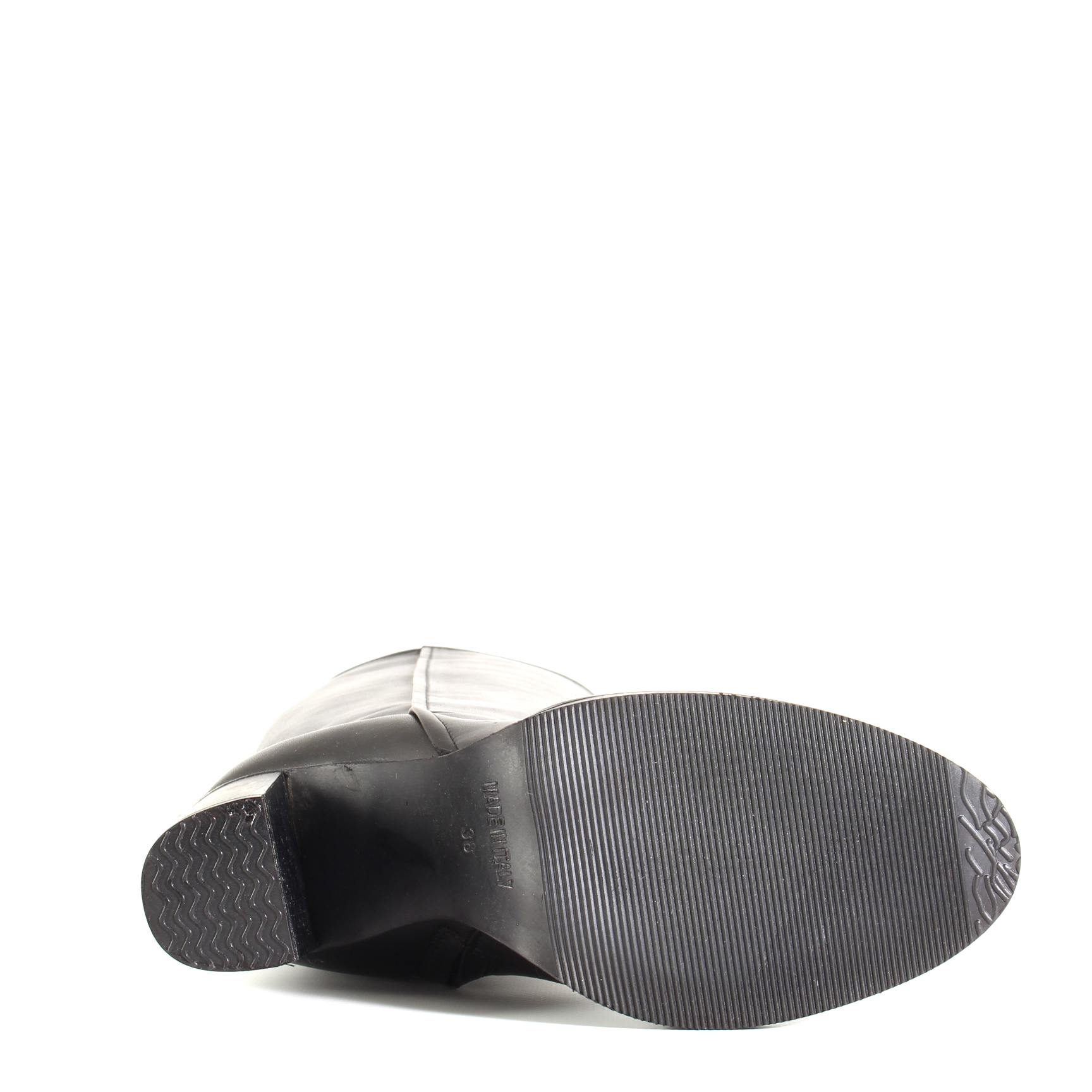 Lo stivale Carly è per chi ama distinguersi con stile: elegante, audace, deciso. Realizzato in pelle nera lucida/raffinata, questo modello cattura lo sguardo e rimane nella memoria. Il tacco da 9 cm lo eleva — letteralmente — conferendo una postura che slancia, accentua la gamba e regala fiducia a ogni passo.