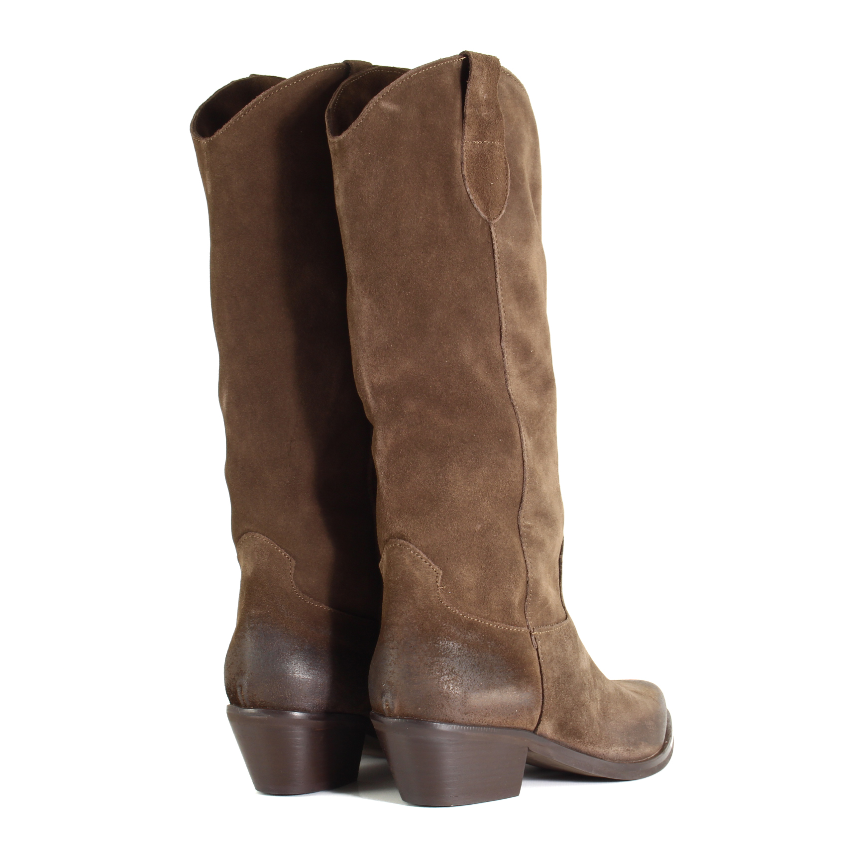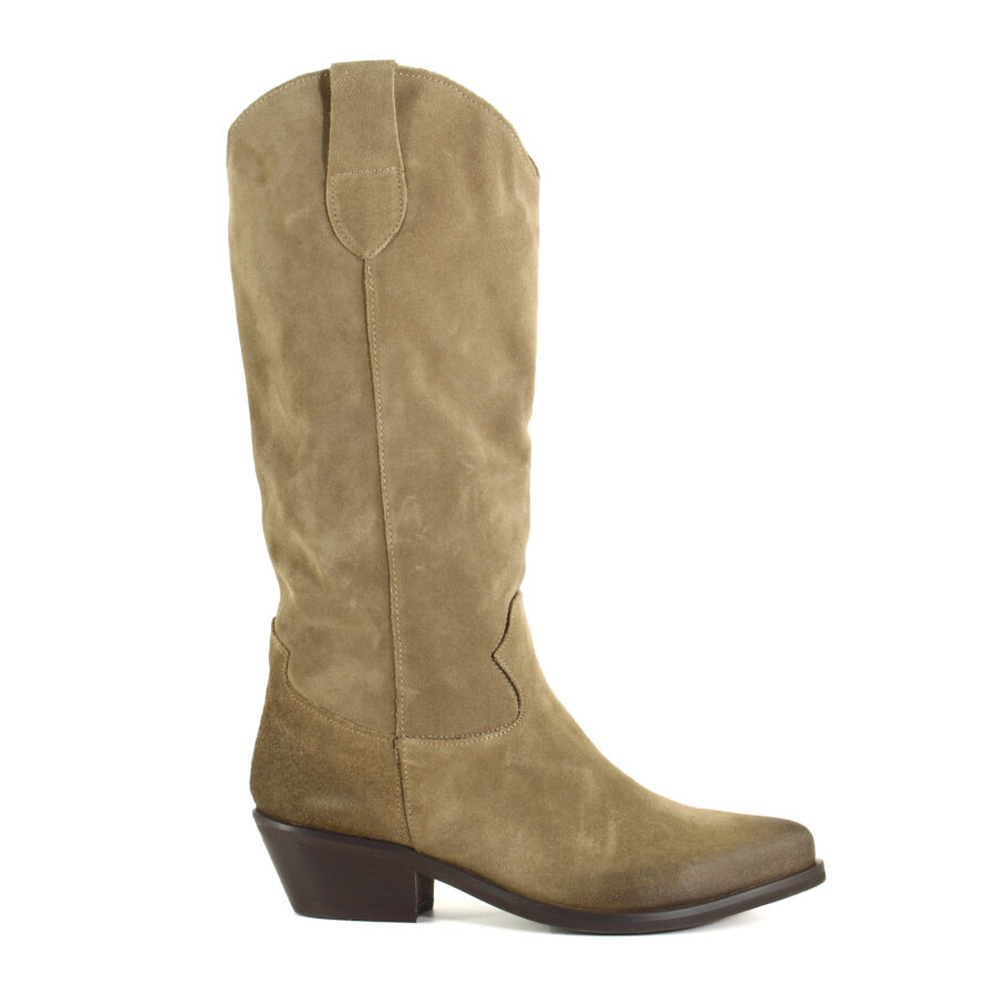 Il camoscio lavorato artigianalmente assicura morbidezza, resistenza e una finitura elegante, mentre le linee dello stivale valorizzano la gamba e accompagnano il passo con sicurezza. I dettagli tipici del texano — cuciture, punta leggermente affusolata e silhouette slanciata — parlano di stile senza ostentazione.