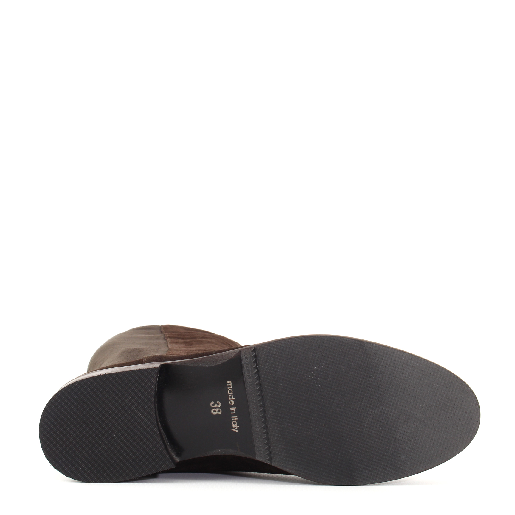 Ecco qui lo stivale Futura di Le Walterine, un vero must-have per chi ama lo stile senza rinunciare al comfort! Questo stivale alto in camoscio marrone scuro sembra il compagno perfetto per le giornate autunnali in cui vuoi sentirti chic ma anche pronta per affrontare qualsiasi sfida... come camminare tra le foglie con eleganza! La zip laterale dà un tocco di praticità, perché chi ha tempo da perdere con lacci quando il caffè è già pronto al bar?