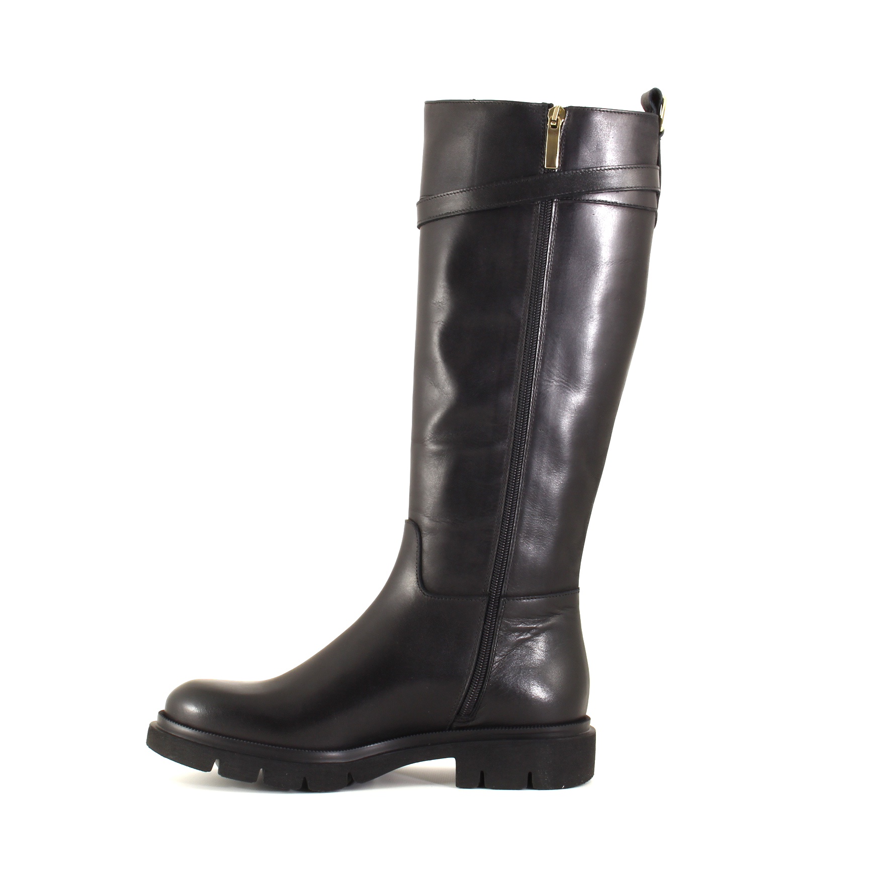 La suola carrarmato, solida ma equilibrata, offre stabilità e grip eccellente senza appesantire il passo. Il tacco basso mantiene l’andatura naturale, rendendo Marie una scelta ideale per chi desidera uno stivale raffinato ma adatto anche alle giornate dinamiche. La zip laterale interna assicura praticità totale nell’indosso, mentre la fibbia metallica dorata sul lato esterno aggiunge un dettaglio luminoso che arricchisce la silhouette senza sovraccaricarla.